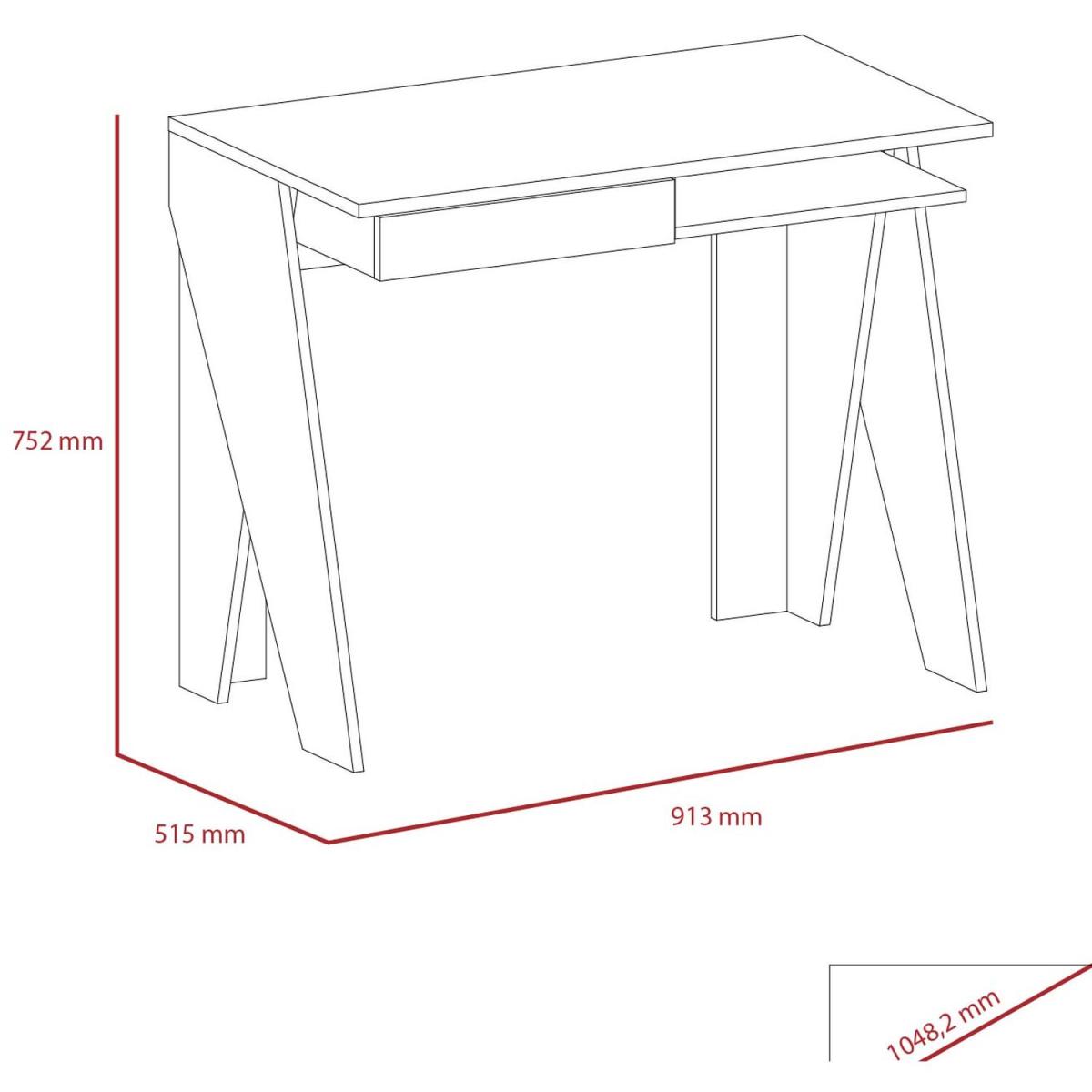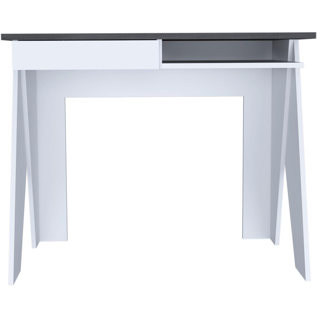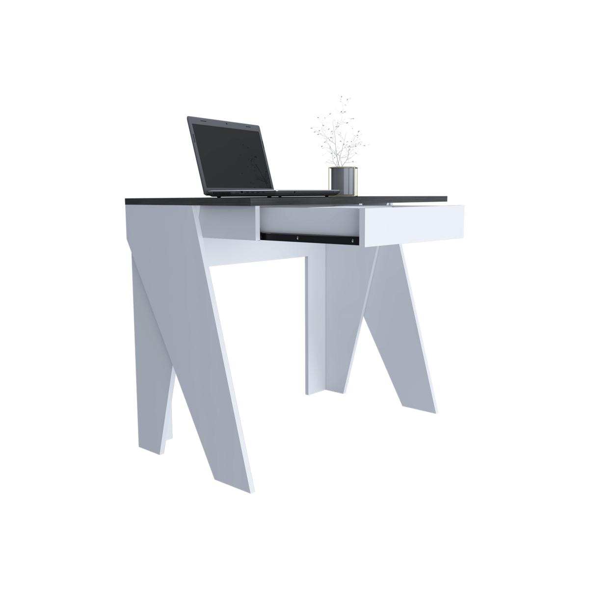 I always reach for this white desk when I need a compact, fuss-free workstation - its clean lines and splayed legs work well in modern, Scandinavian or light-industrial schemes. The single drop-in drawer is just deep enough for stationery, keeping the desktop clutter-free. For styling, position it beneath a slim wall shelf or beside a window to maximise natural light. Keep the surface clear with only a simple desk lamp and a small plant or tray, and anchor it with a neutral-tone rug. Pair with a mid-century or wire-frame chair to balance the desk’s angular form.