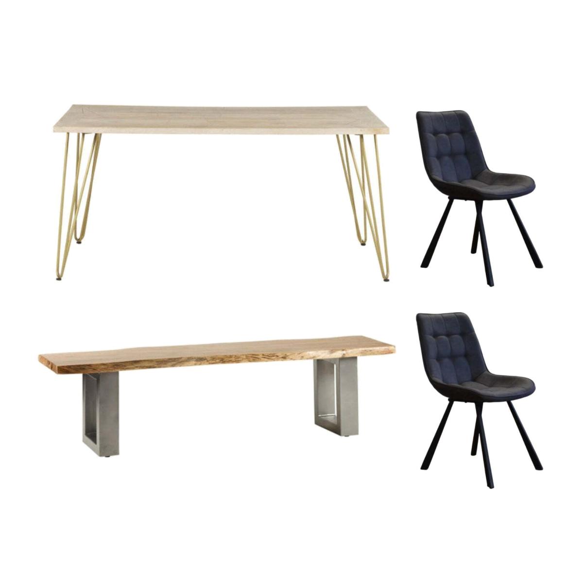 Dallas Light Mango Wooden Rectangular Dining Table Set With 2 Chairs 1 Bench - Light Wood