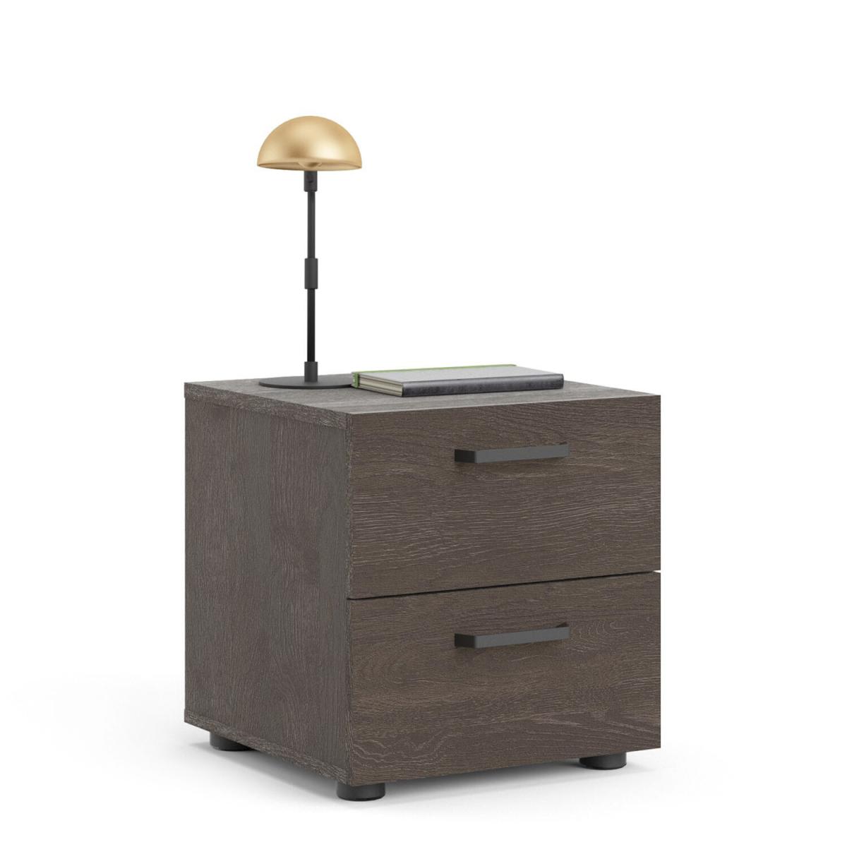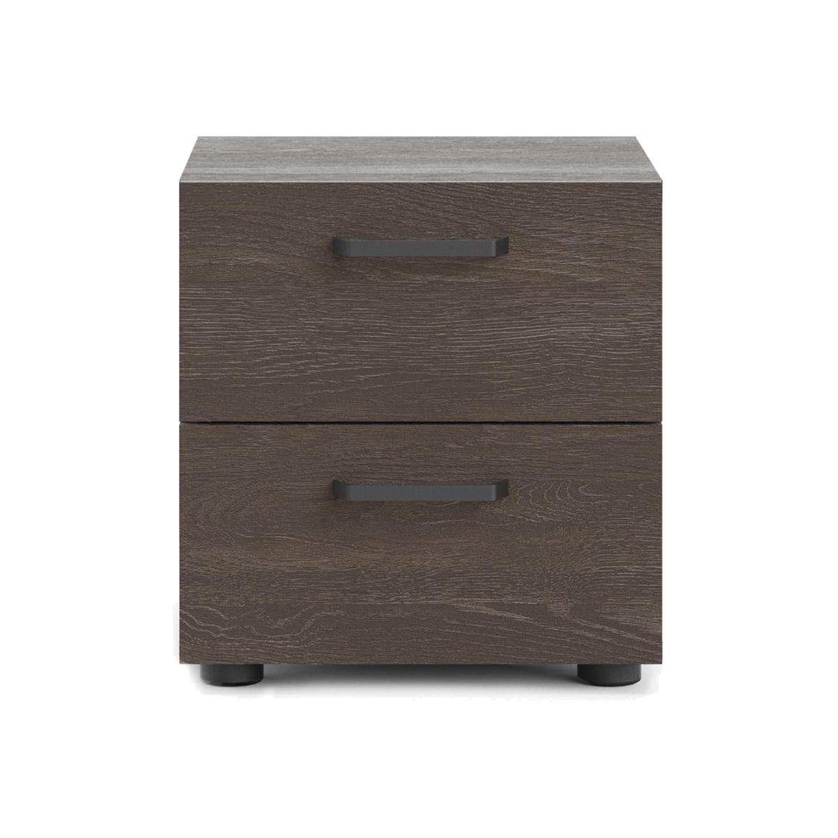 Introducing the Dallas Nightstand: a sleek and functional piece of furniture that adds a touch of sophistication to any bedroom. With a contemporary design and beautiful Rovere Gessato dark oak colour, this nightstand provides a modern and cohesive ambience to elevate your decor. Featuring two spacious drawers, this nightstand has modern plastic black handles and retracts smoothly on metal glides with built-in safety stops. The steel brackets provide added support to the bottom of each drawer, ensuring that this piece stays sturdy even with daily use. The Dallas 2 Drawer Nightstand is made from engineered wood and expertly crafted in Denmark, featuring a Scandinavian look and design that is stylish and practical. The components are pre-drilled and pre-cut, making assembly a breeze. The product comes with an assembly manual and all necessary hardware and fasteners, so you can have your nightstand up and ready quickly. Suitable for small rooms, this two-drawer nightstand is an ideal solution for those looking to maximise their space. With its contemporary style, ample storage, and high-quality construction, this nightstand will surely become a cherished part of your home for years to come.