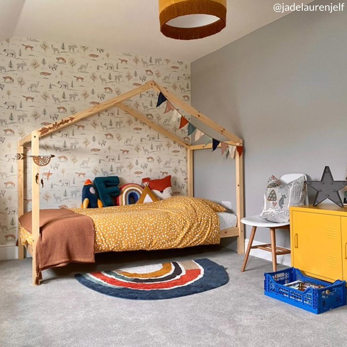 I love this bed for its simple, natural timber frame that brings a clean and timeless look to a child's room. It works particularly well in Scandi-inspired or minimal interiors, creating a cosy corner without feeling cluttered. Styling tips include pairing it with neutral bedding and playful, colourful cushions or throws to add personality. For practicality, use under-bed storage drawers or baskets to optimise space, making it perfect for smaller rooms. The house-shaped design adds a whimsical touch that helps establish a warm, inviting space for little ones to relax and play.