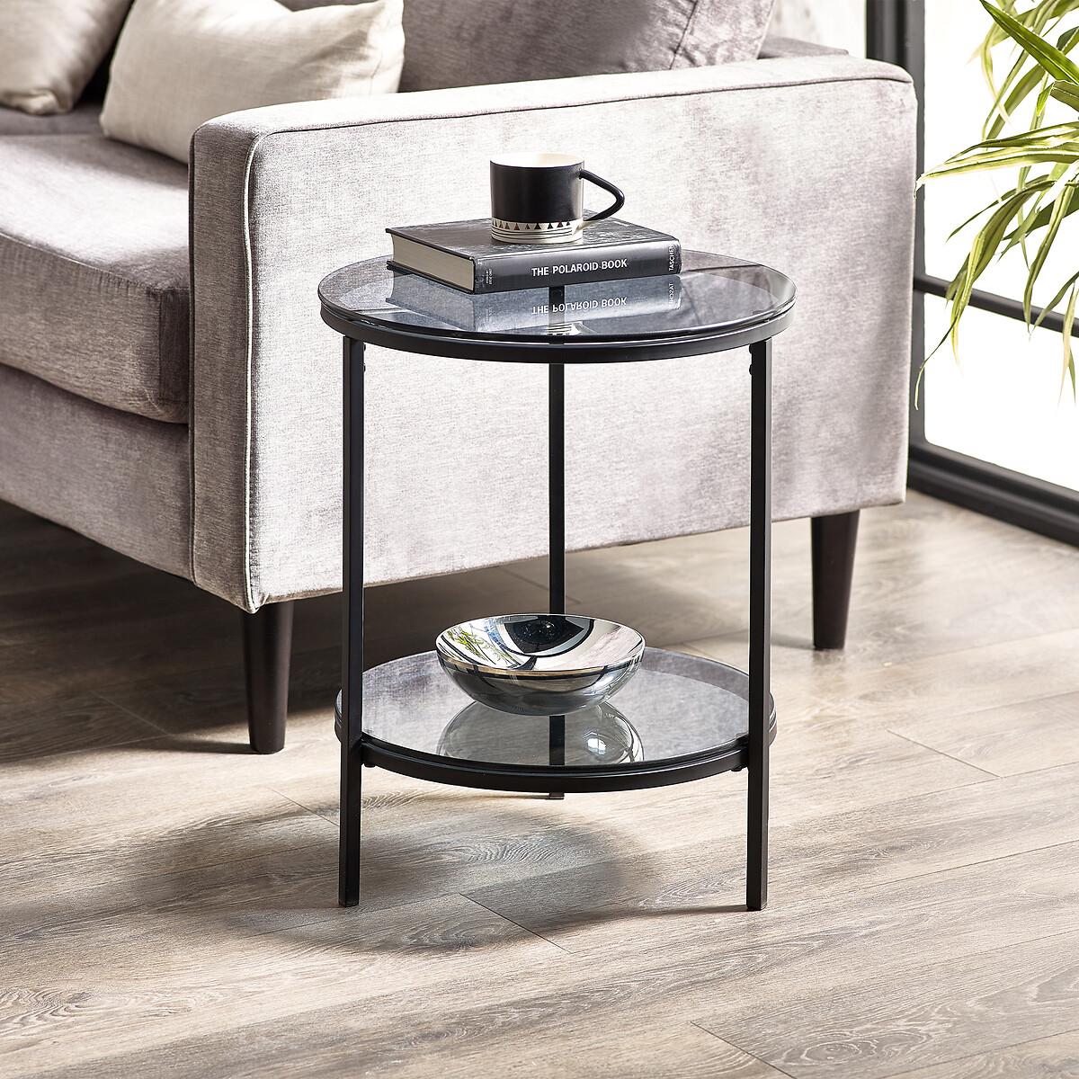Featuring clean, minimalist lines and finished in a subtle smoked glass, the Dallas is perfect for contemporary apartment living. Product details • Smoked glass table top • Storage shelf • Tempered glass construction - Tempered glass is extremely durable, and can withstand higher temperatures and sudden temperature changes without breaking, and is resistant to scratches and general wear and tear • Metal steel frame in matte black finish • Assembly required • Fixings supplied • 12 month manufacturer warranty. Product Composition - 90% Metal & 10% Glass. Product Dimensions - 45 cm x45 cm x56 cm , Weight - 4 KGPackage Dimensions - 48 cm x 48 cm x 10 cm, Weight 4.5 kg. Please note: this product cannot be be delivered to all Offshore Islands Northern Ireland or Republic of Ireland. This product will be dispatched by one of our trusted suppliers. You’ll be contacted by their selected courier about your delivery.