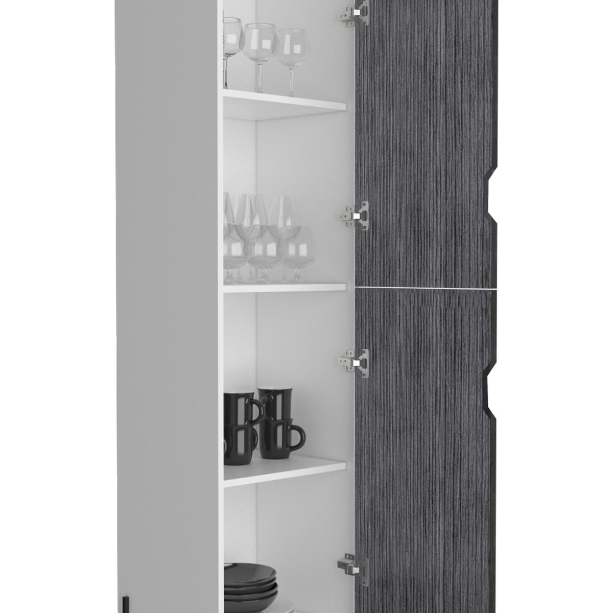 Our Dallas modern living collection is ideal for todays casual, open plan living style. Adventurous styling is applied to each piece to offer practical pieces with individuality. Cabinets have an easy to clean, hardwearing white finish with contrasting carbon grey woodgrain effect fronts with slimline black metal legs. This really useful tall storage cabinet is small enough to fit almost anywhere yet provides so much versatile storage for you. Two doors and three sturdy fixed internal shelves ensure you can easily store away toys, games, tableware, gadgets and anything you want easy to hand.