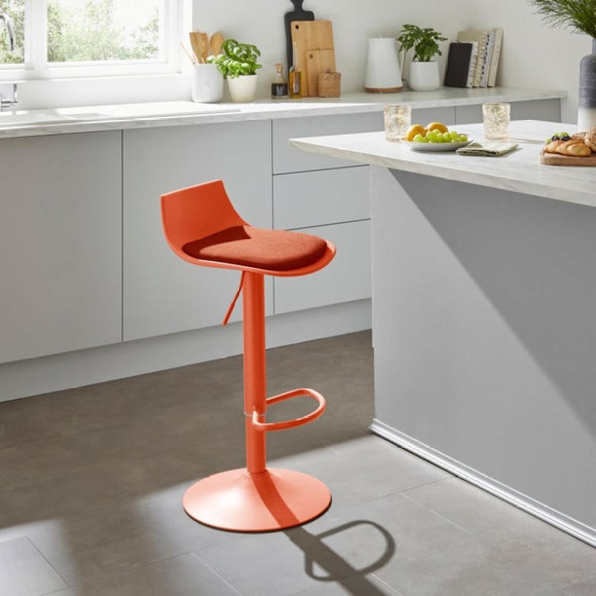 I really like this bar stool for its versatility and modern appeal. Its height-adjustable feature makes it practical for various spaces, whether you’re hosting at your breakfast bar or creating a casual seating area. The sleek, contemporary design and vibrant colour add a pop of personality without overwhelming the space. It works well in open-plan kitchens, breakfast bars, or even a home office setup where a stylish but functional seating option is needed. For styling tips, pair it with minimalist accessories or complement your colour scheme with cushions or soft textiles, but keep the overall look clean and uncluttered to let the stool be a statement piece.