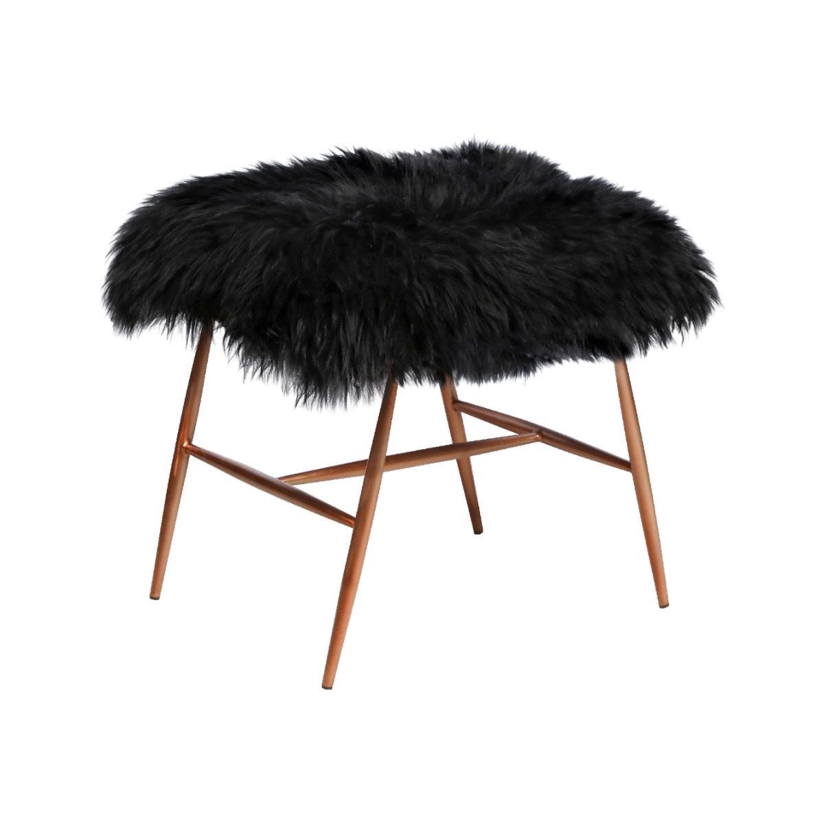 Put your feet up and snuggle into the utterly unique and beautifully crafted Baa Baa stool. Made from cosy sheep’s wool and a stunning copper frame, this sophisticated piece looks fabulous in a bohemian or modern home. Comfort and style to put a smile on faces of all ages. Contemporary design. Black sheep’s wool cover. Durable iron frame in copper finish. Strong rubber wood arms and straps to hold cushion. Stylishly angled legs