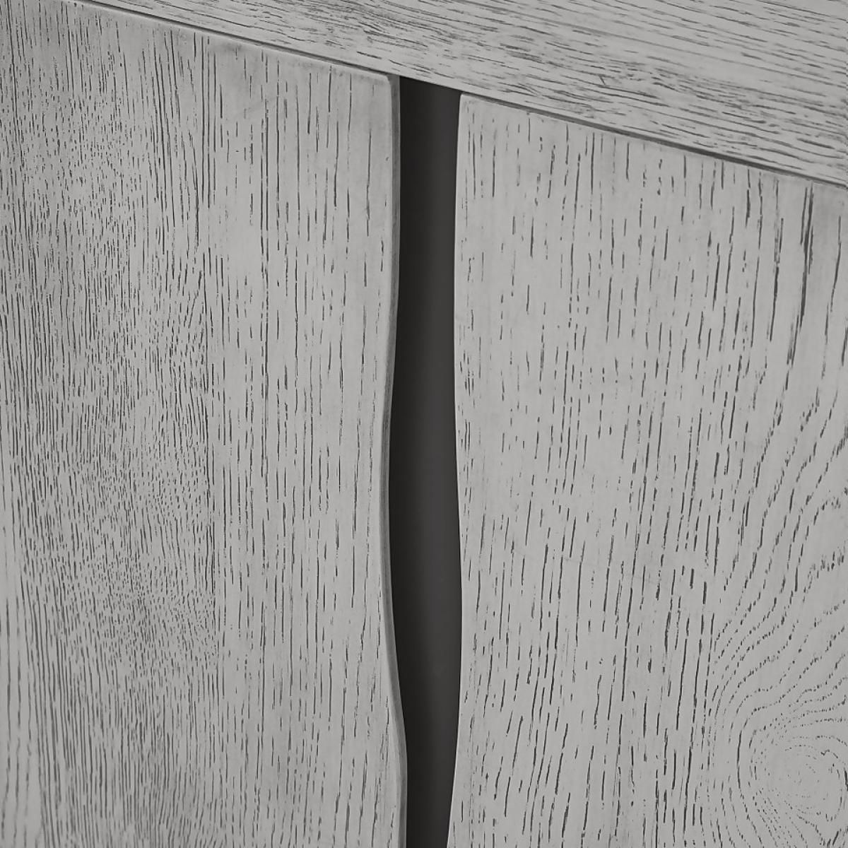The Dalston Range has a distinct and bold style combining a natural aesthetics with an industrial form. The brushed oak, grey oil stain finish, brings out the grain of the material. Combined with the live edge detail which enhances the natural qualities of the timber. Strong and refined lines seek to cross the paths between the uniform and irregular patterns making for a stripped back, modern and on trend living and dining collection.