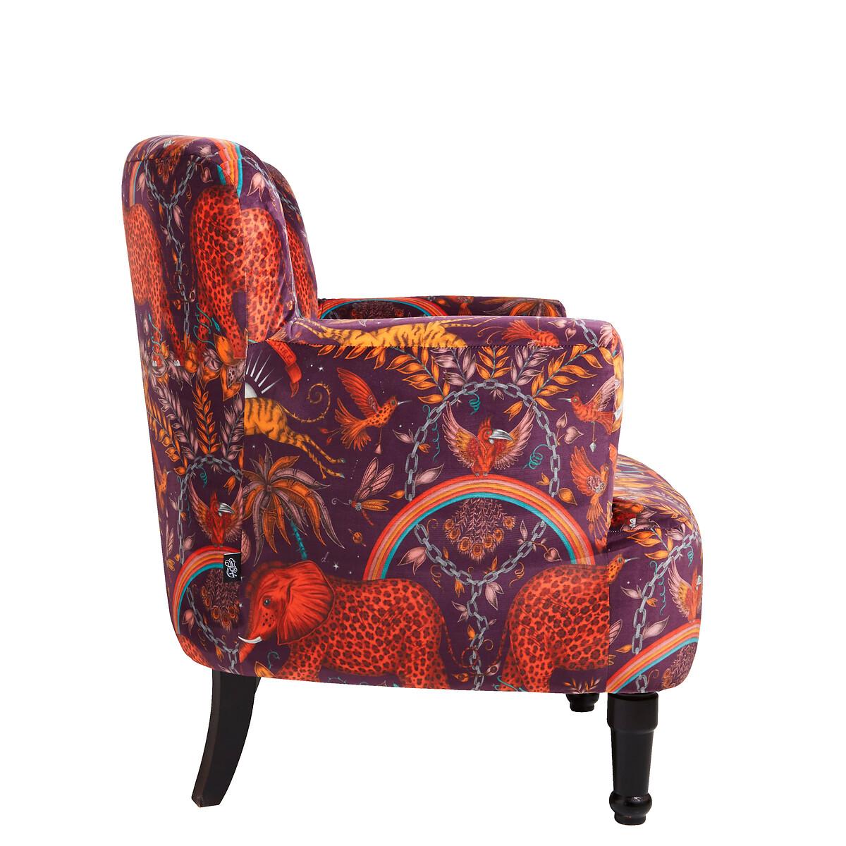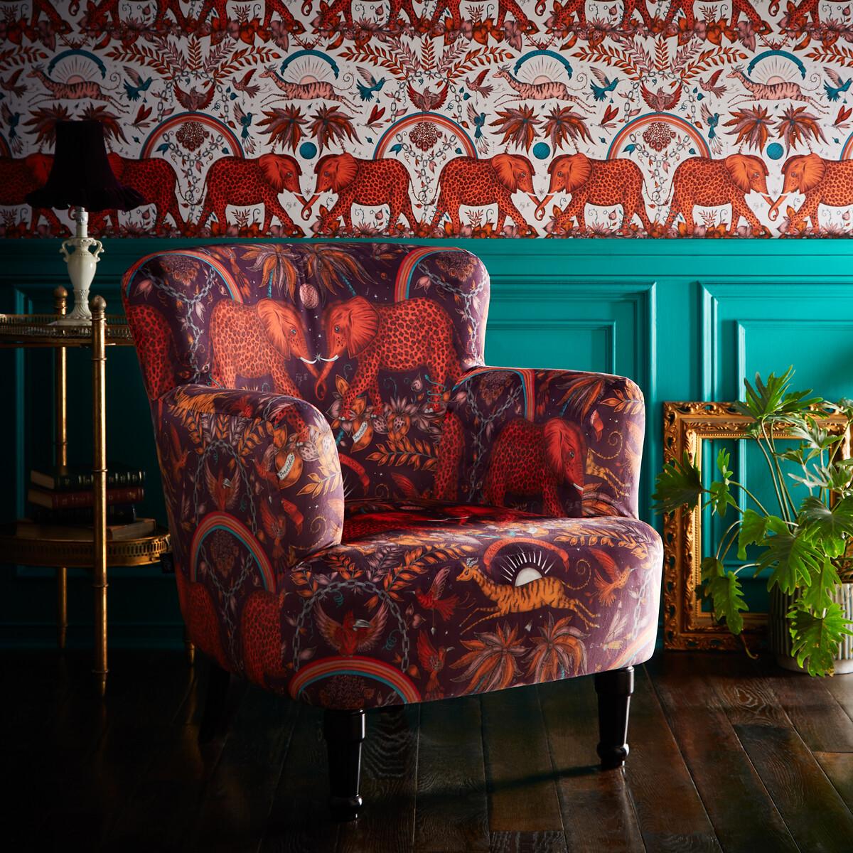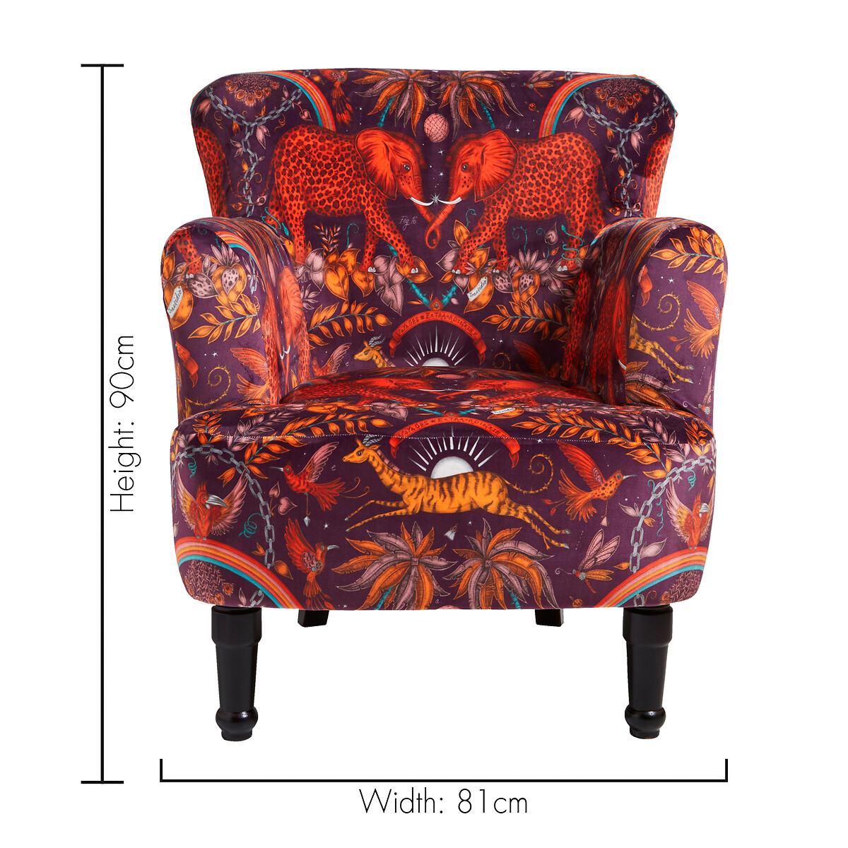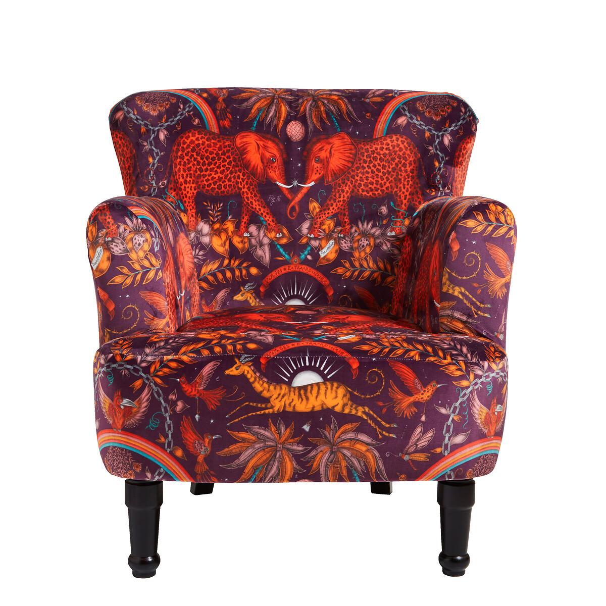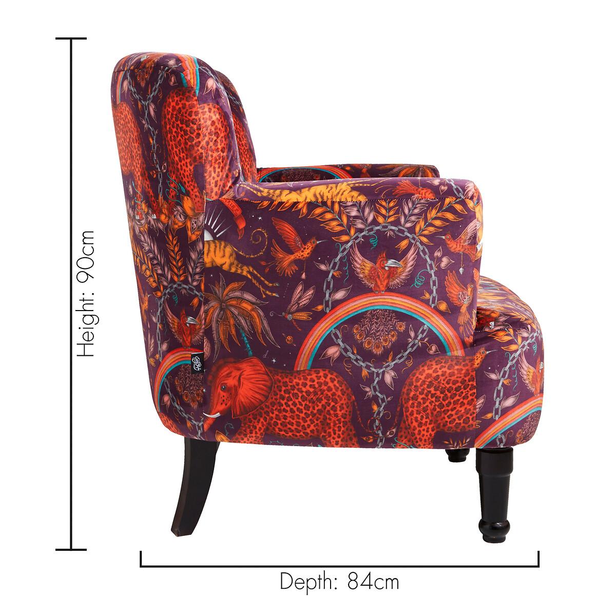 The rich, fiery colours of the sumptuous Zambezi velvet create a stunning statement piece. Inspired by French novelist Jules Verne’s adventure stories and Emma’s travels to Botswana, this armchair showcases an explosion of African fantasy, sure to spark the imagination. Product Details Velvet upholstery Foam and fibre filling. Solid beech legs. Wooden frame Sponge clean only. Please note this product has a weight limit of 130 KGComposition Fabric- 100% Polyester, Legs- 100% Beech Wood, Filling- 100% FR Foam. Product Dimensions - 82 cm x82 cm x91 cm. Product Weight - 15 KGPackage Dimensions - 84 cm x 81 cm x 84 cm. This product will be dispatched by one of our trusted suppliers. You’ll be contacted by their selected courier about your delivery. Please note that this item cannot be delivered to the Offshore Islands, Northern Ireland or the Republic of Ireland.
