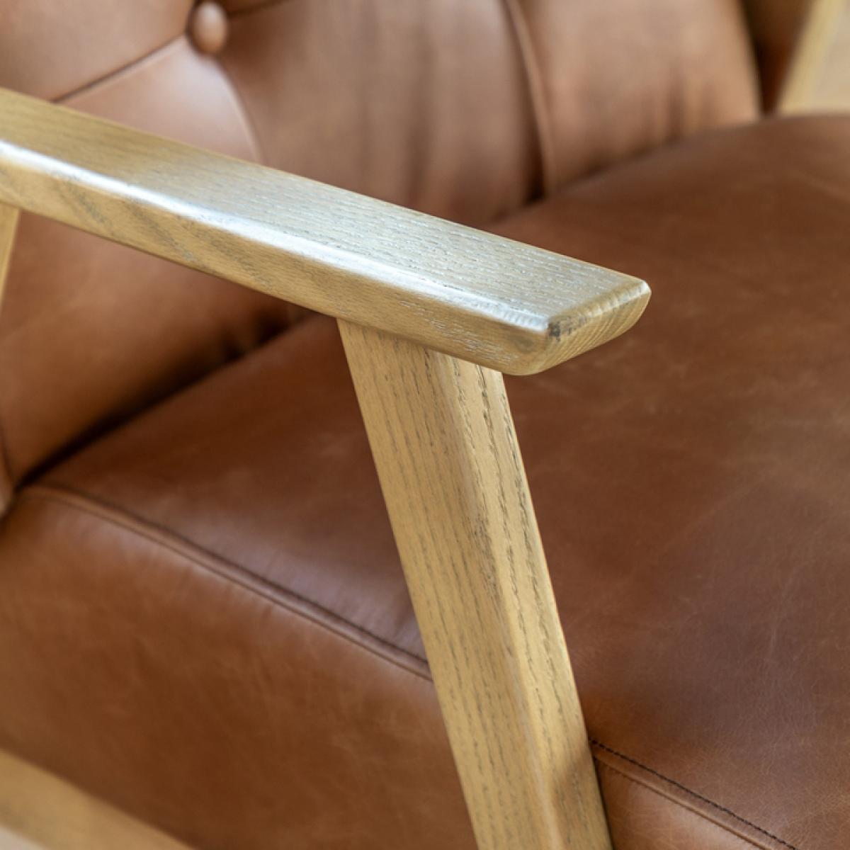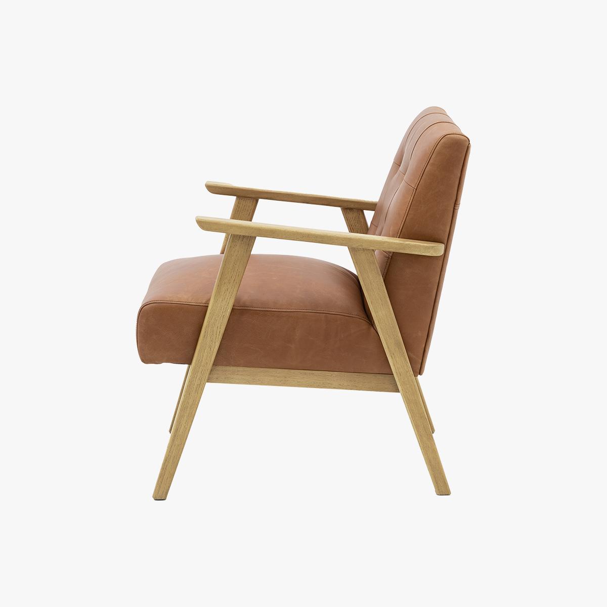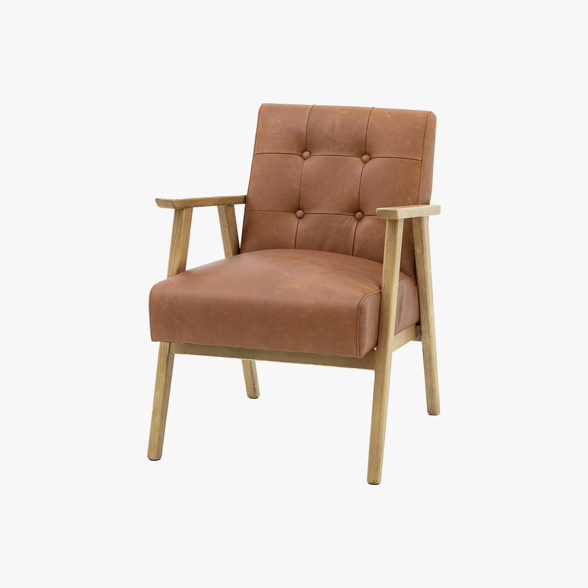 Step back in time with the Dalton Armchair, the perfect blend of retro charm and modern comfort. Inspired by mid-century design, this stylish armchair features a sleek silhouette and classic button detailing, upholstered in a durable leather material and supported by tapered wooden legs. Whether you're creating a cosy reading nook or adding a statement piece to your living room, Dalton offers timeless appeal and lasting comfort.