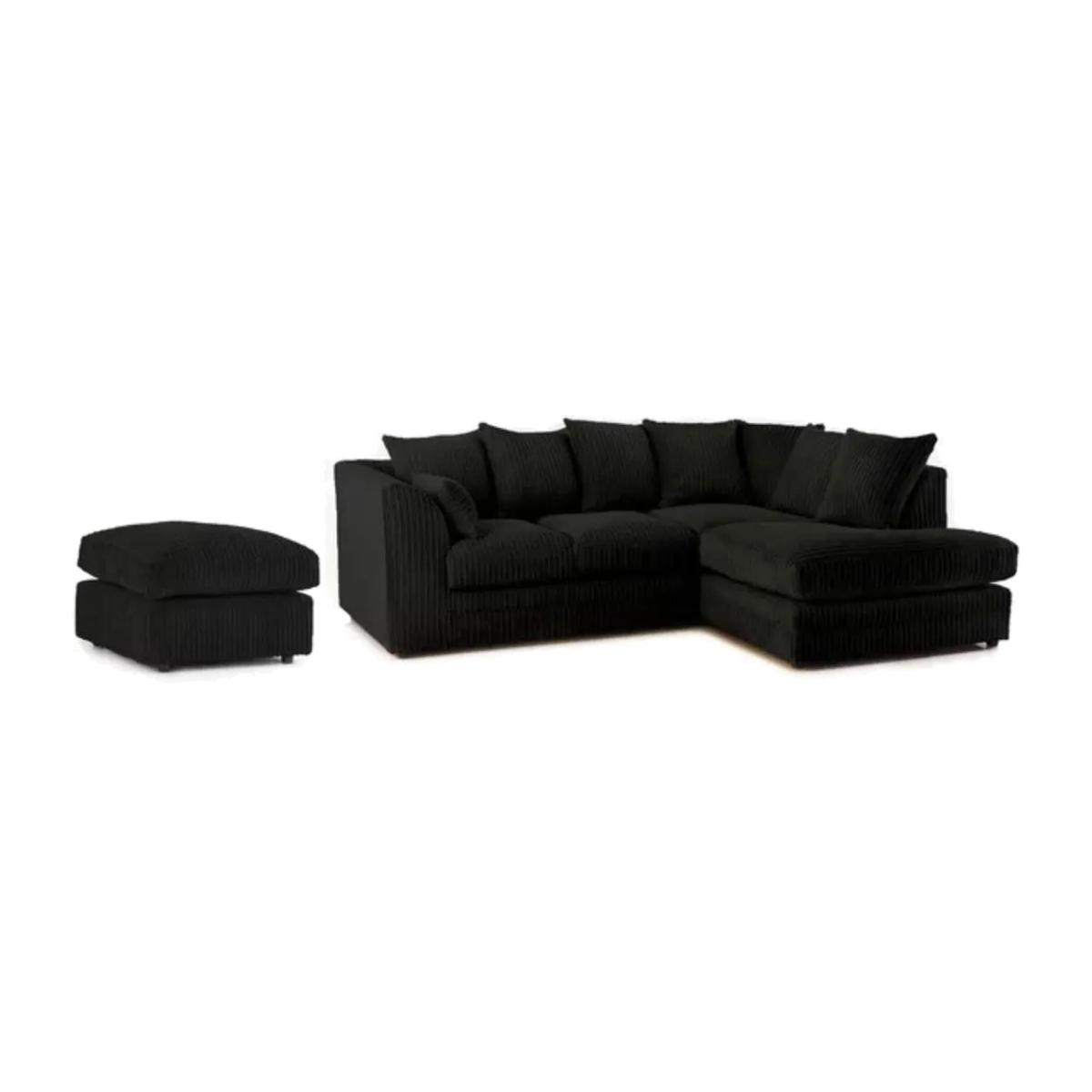 Daly Jumbo Cord Corner Sofa With Footstool - Black / Right-hand