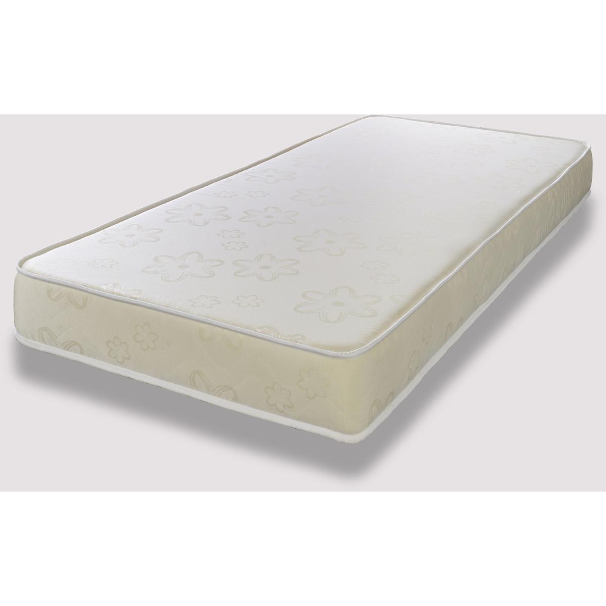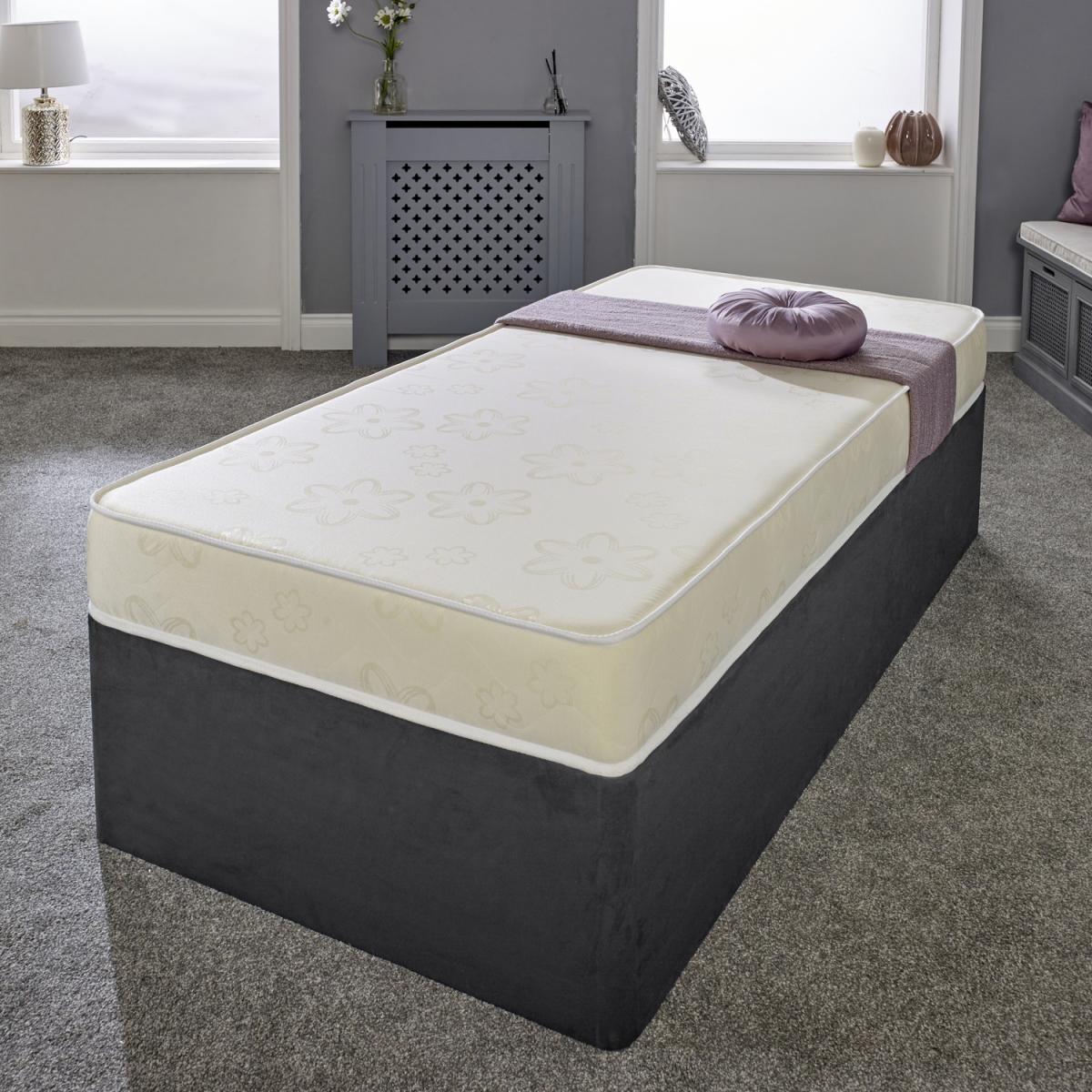 Great for bunk beds, cabin beds, day beds etc. Please do check the size of your base before ordering as these will be difficult for you to return. This is our Damask Essentials Gold Comfort Flattop Mattress. It has a double insulated open coil Bonnell spring unit with an additional layer of comfort padding on both sides. Covered in Gold Damask material with a white taped edge, it is a medium soft feel mattress that sleeps both sides and you should turn and rotate your mattress regularly to get the best from it. These are UK-made mattresses, produced in our West Yorkshire factory and are fully compliant with all relevant UK fire safety regulations for domestic use. We compress vacuum pack and roll these mattresses so that they can be delivered quickly and cheaply to your door. You will need to allow a few hours after opening your bed to regain its shape and size.