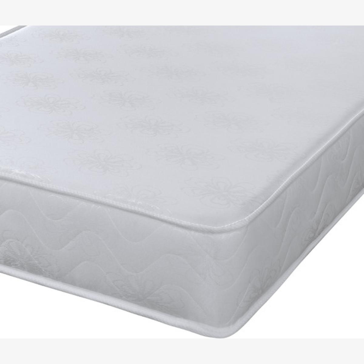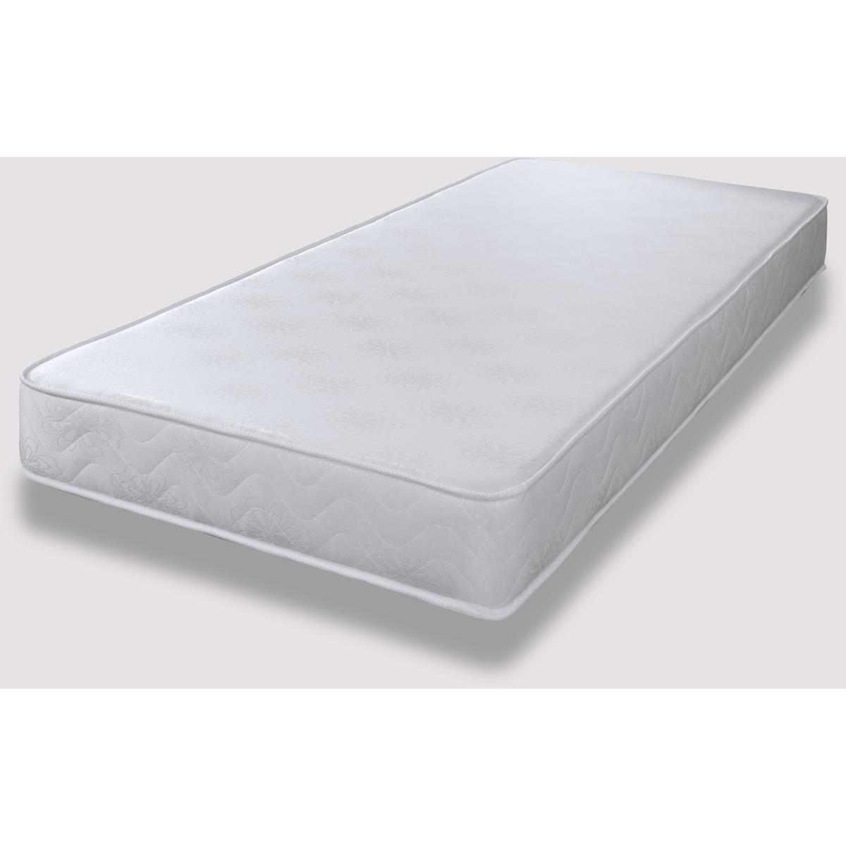 Great for bunk beds, cabin beds, day beds etc. This is our Damask Essentials White Comfort Flattop Mattress. It has a double insulated open coil Bonnell spring unit with an additional layer of comfort padding on both sides. Covered in White Damask material with a white taped edge, it is a medium soft feel mattress that sleeps both sides. Ensure you turn and rotate your mattress regularly to get the best from it. These are UK-made mattresses, produced in our West Yorkshire factory and are fully compliant with all relevant UK fire safety regulations for domestic use. We compress, vacuum pack and roll these mattresses so they can be delivered quickly and cheaply to your door. You will need to allow a few hours after opening for your mattress to regain its shape and size.