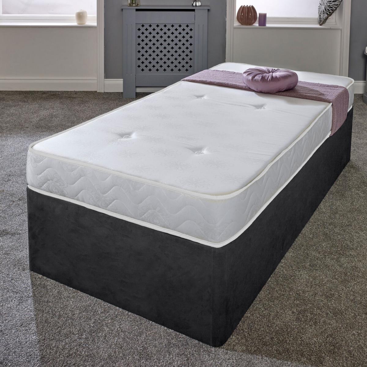 Great for bunk beds, cabin beds, day beds etc. Please do check the size of your base before ordering as these will be difficult for you to return. This is our Damask Essentials White Comfort Tufted Budget mattress. It has a double insulated open coil Bonnell spring unit with an additional layer of comfort padding on both sides. Covered in White Damask material with a white taped edge and a hand-tufted finish, it is a medium soft feel mattress that sleeps both sides and you should turn and rotate your mattress regularly to get the best from it. These are UK-made mattresses, produced in our West Yorkshire factory and are fully compliant with all relevant UK fire safety regulations for domestic use.brbr. We compress, vacuum pack and roll these mattresses so that they can be delivered quickly and cheaply to your door. You will need to allow a few hours after opening for your bed to regain its shape and size.