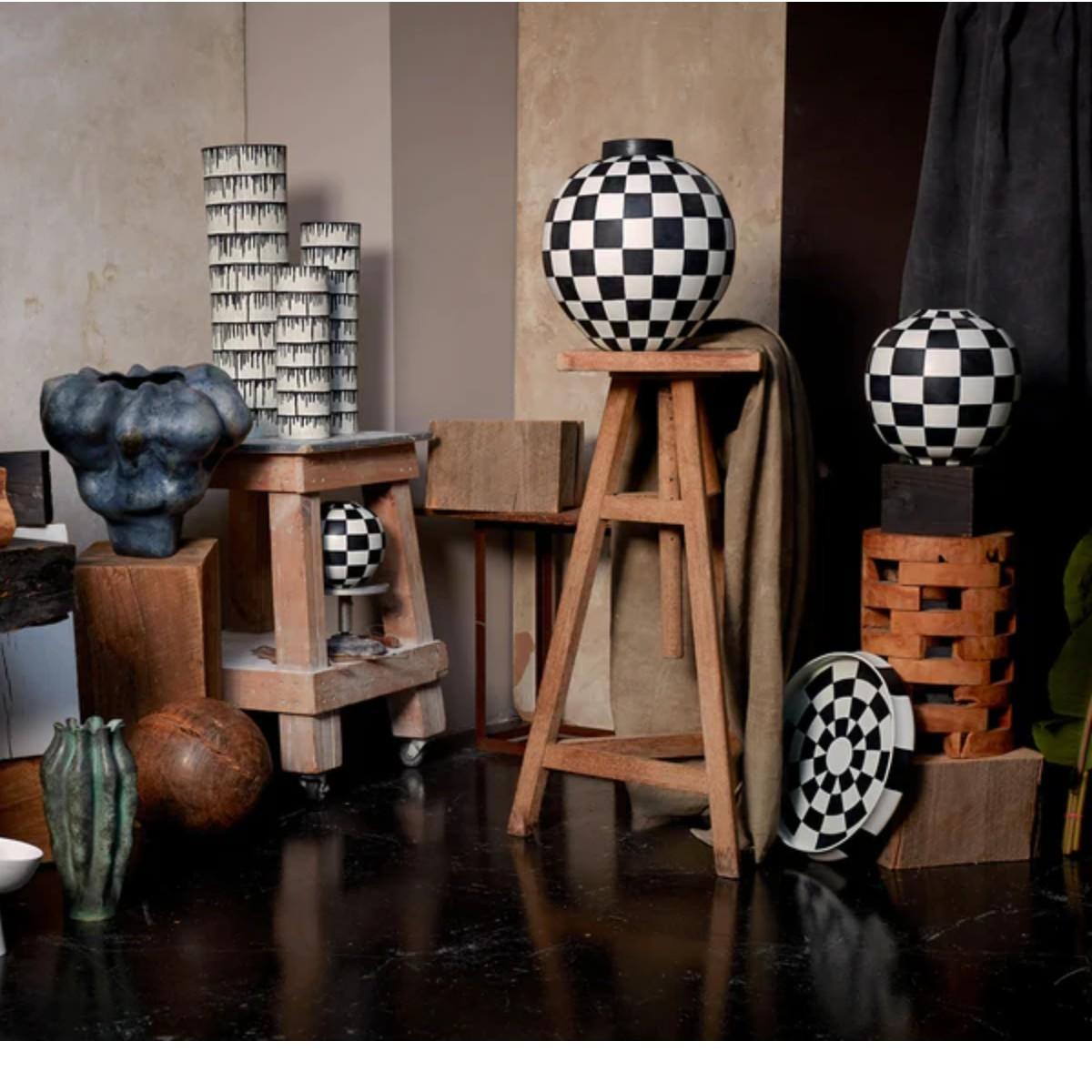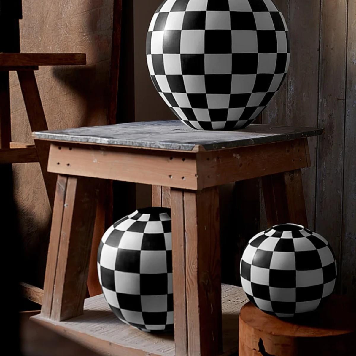 The big checkered vase is a striking piece that works well in modern and contemporary interiors, adding a graphic punch without overwhelming the space. I love using it as a standalone sculpture on neutral surfaces, or pairing it with minimalist floral arrangements for a clean, artistic look. It’s versatile enough to sit on a console table, or as a statement piece on the floor in a living room corner. For styling tips, keep the colours simple and let the pattern do the talking, and consider balancing it with matte or textured materials nearby to avoid visual clutter. It’s perfect for adding colour and pattern to an otherwise understated space.