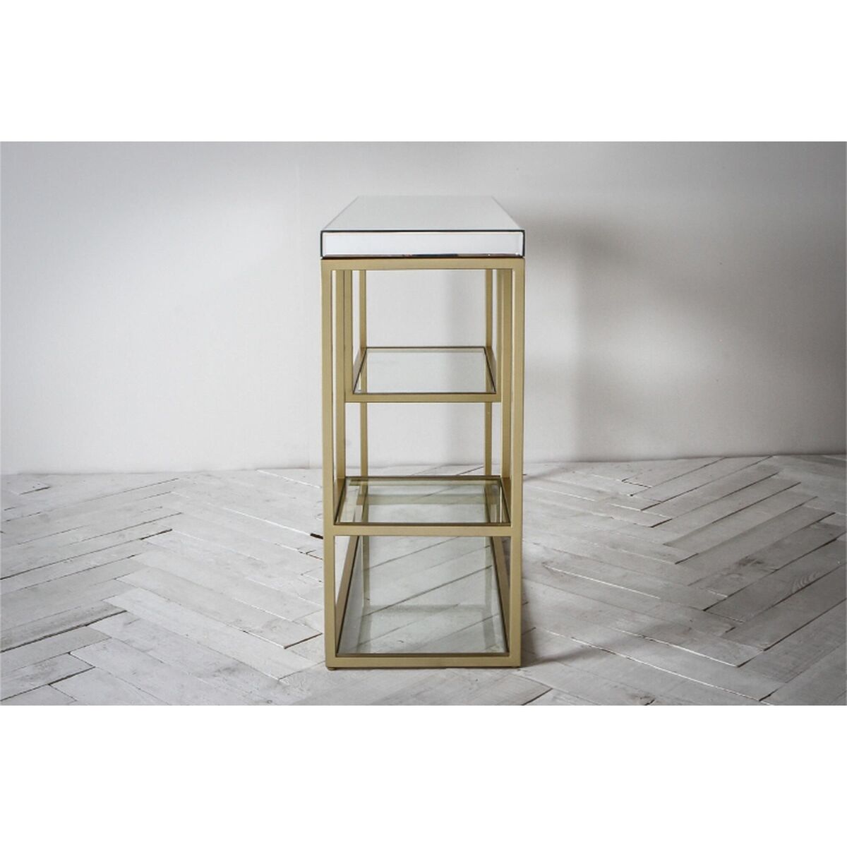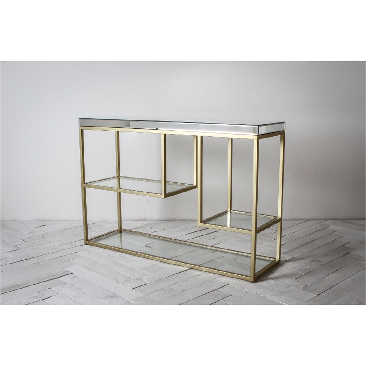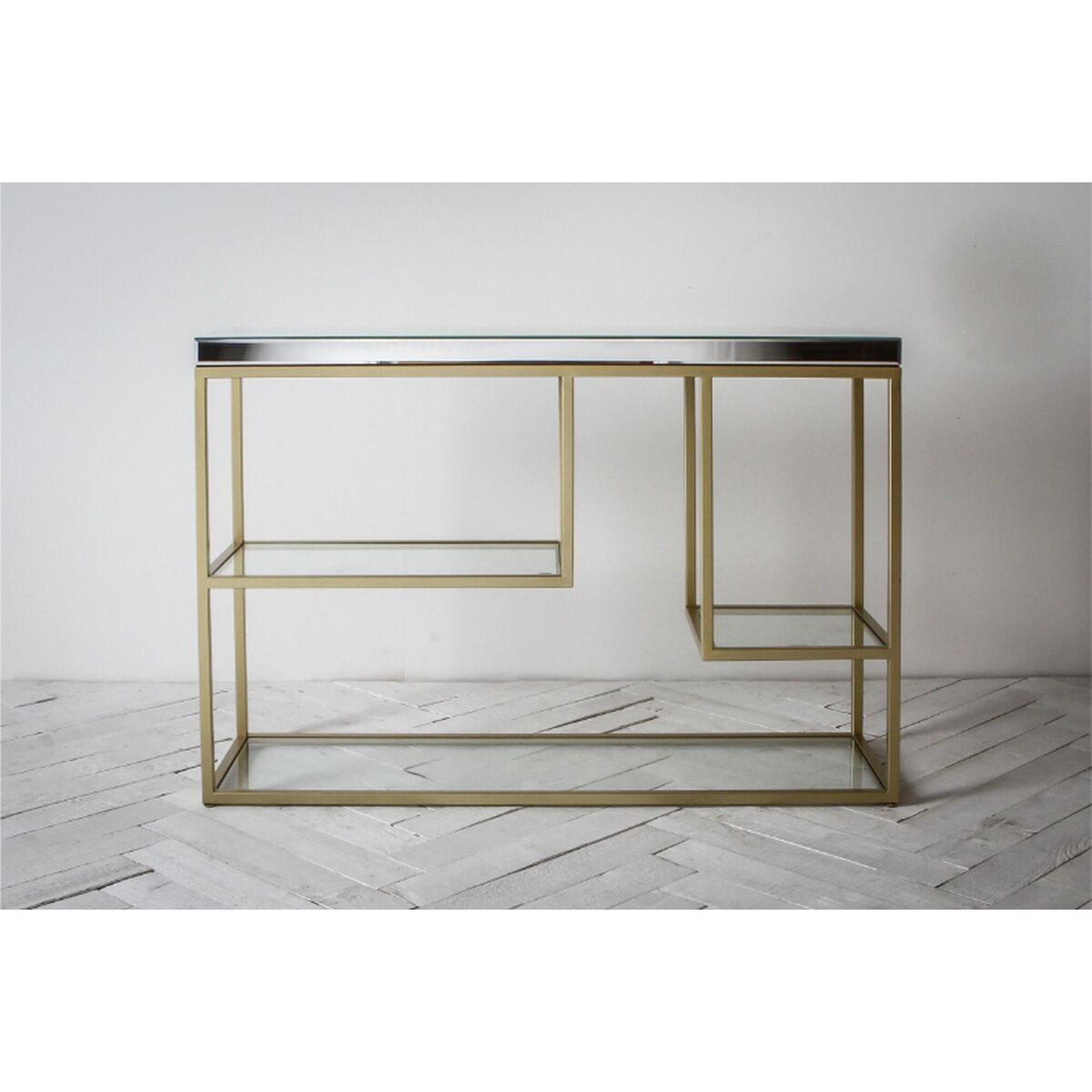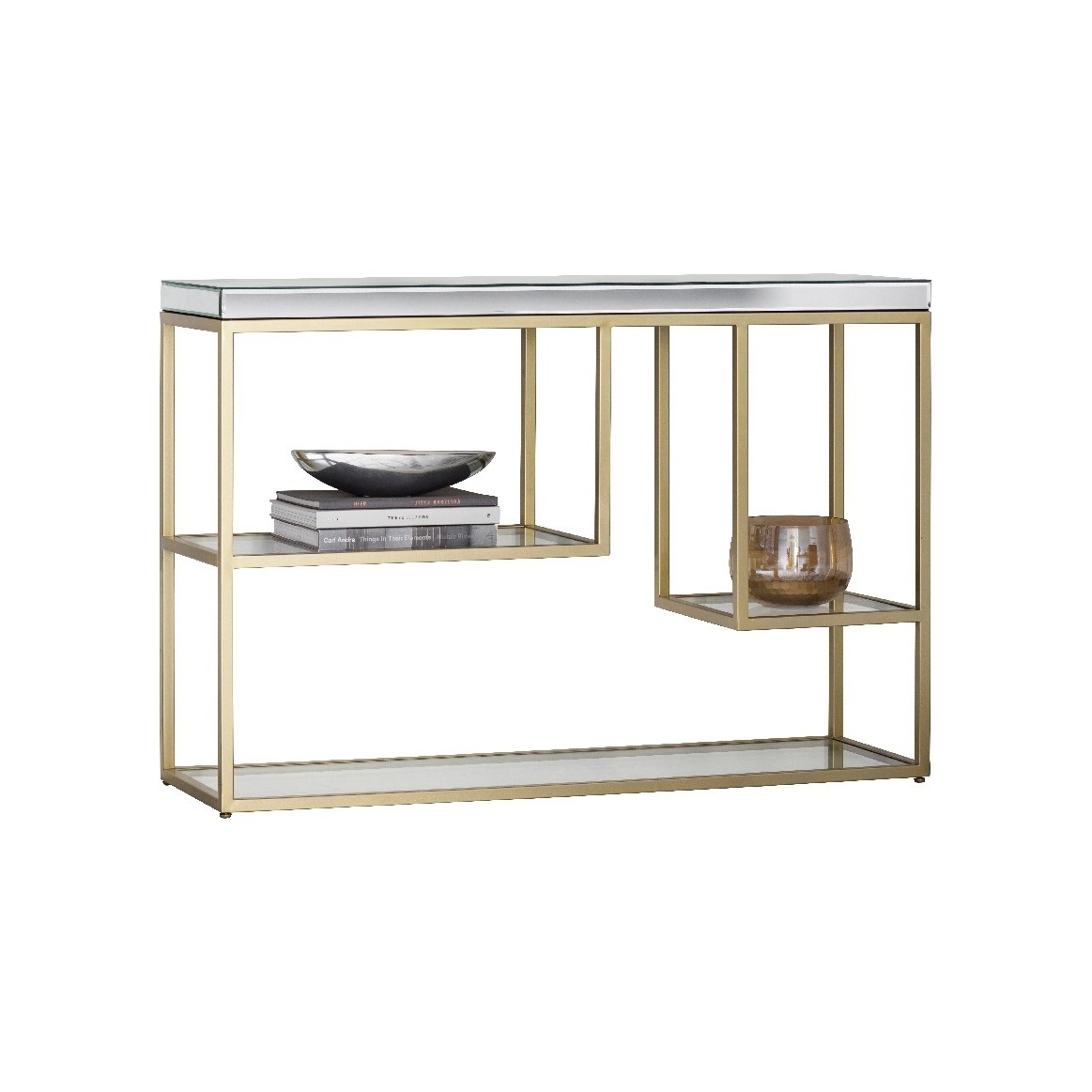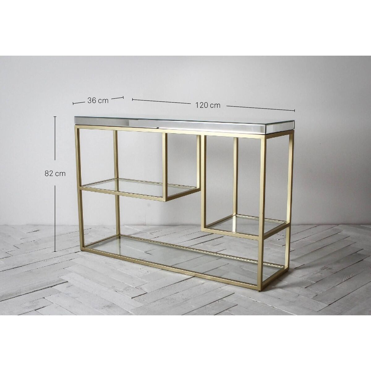 Let the Damsay console table take you by the hand to a world of sophistication and home luxury. This gorgeous design could be featured in any interiors magazine due to its undeniable presence, refined materials and high-end look. It features a slender, Matt Gold-finished metal base, with two glass shelves and a geometric inspiration, that has been cleverly combined with a stunning glass mirror table top. The dashing contrast between the frame, the top and the shelves is simply exquisite and will make your hallway shine, brimming with elegance. Top the Damsay with a stone or satin vase, pack it with your favourite magazines and wait for your guests to stare in awe. Discover: The Damsay Range