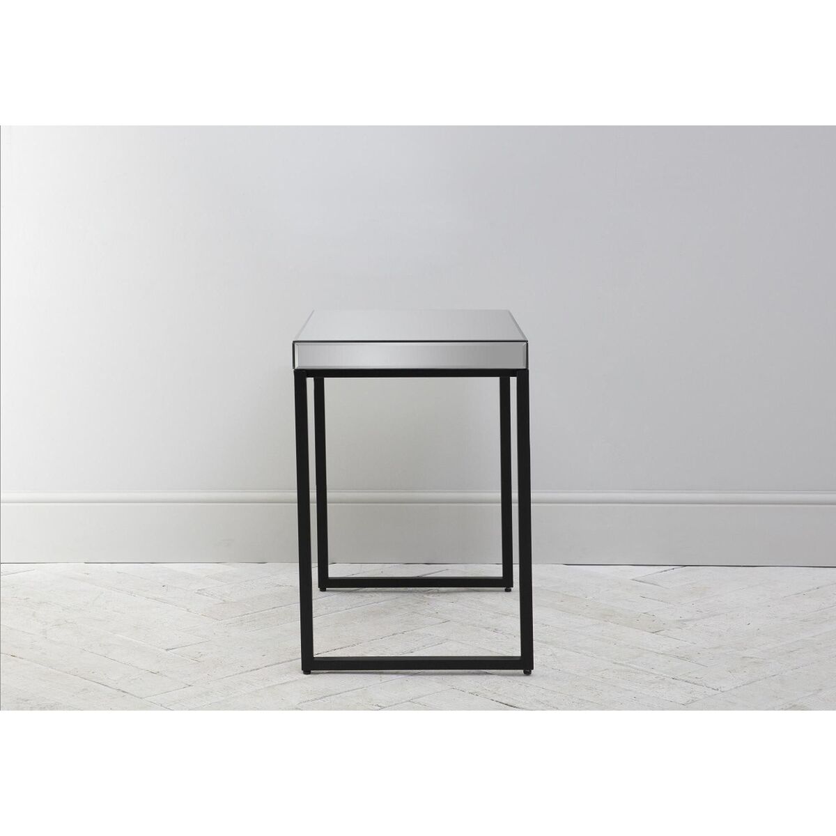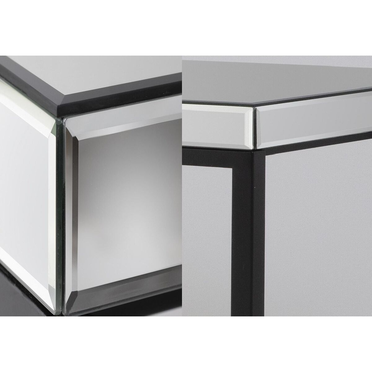 Side tables like the Damsay, although defined by a utilitarian ethos, are essential to pull the decor of the whole room. This high-end Damsay range design features a black-finished metallic base with a stunning glass mirror top. The Damsay will take you by the hand to a world of sophistication and contemporary luxury, making any nook shine with its dapper contrasts.