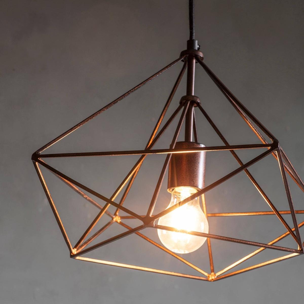 Geometric pendant ceiling light boasting a brushed metal finish. A stunning addition to your living space, the Dana Pendant Ceiling Light is a gorgeous piece from Gallery. Industrial inspired, this brushed metal geometric ceiling light features a simplistic design which creates a stylish and effective look when paired with a vintage bulb. Height Adjustable at time of installation, it is set to look great when used as a feature in kitchens, living rooms and hallways. Need Bulbs? Style this light with our Vintage LED E27 light bulbs.
