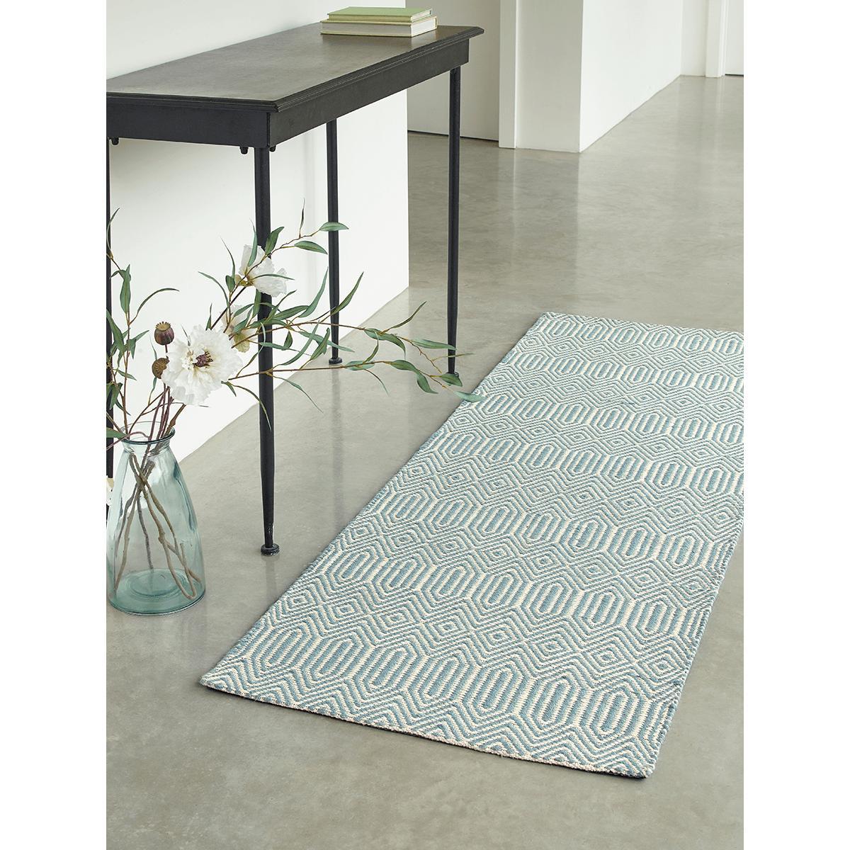 I love this runner for its fresh Eau De Nil hue, which brings a subtle, calming colour to any space. It's versatile enough to work well in modern and minimalist interiors, adding a touch of softness without overwhelming the overall aesthetic. Practical styling tips would be to layer it over a neutral-toned runner or pair it with light wood or metallic accents to enhance its fresh look. It’s particularly effective in hallways or kitchens where you want a clean, contemporary feel. To keep it looking its best, alongside regular vacuuming, consider rotating it seasonally to maintain its colour integrity in high-traffic areas.