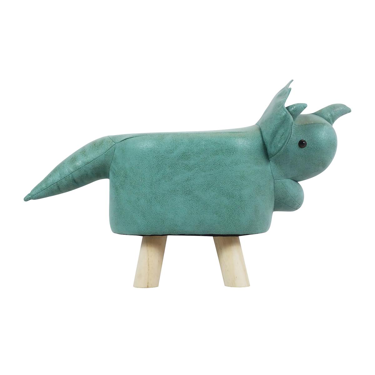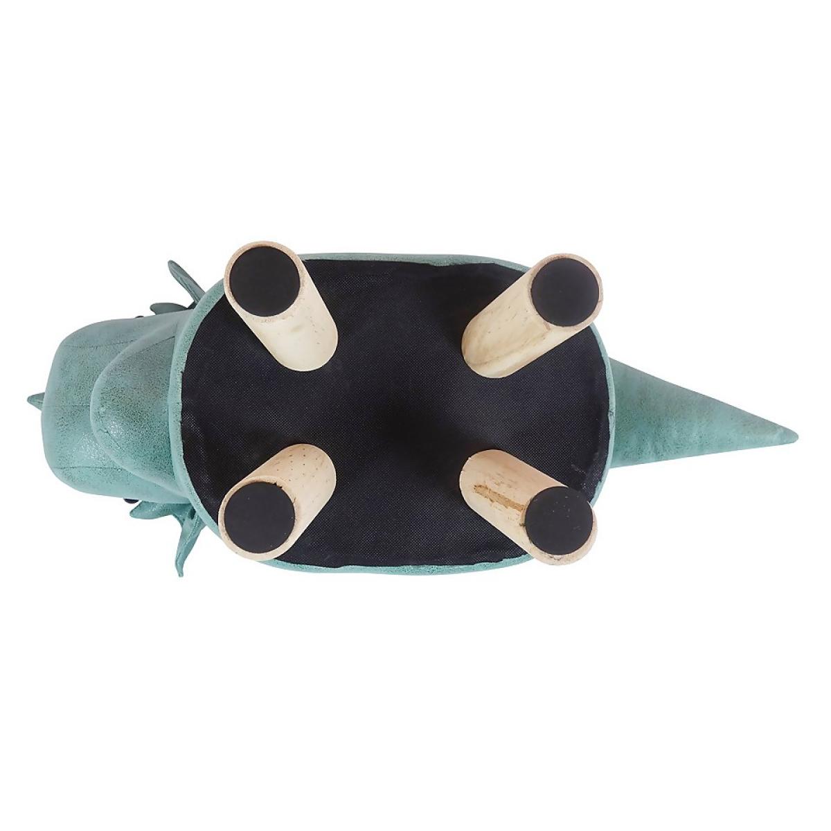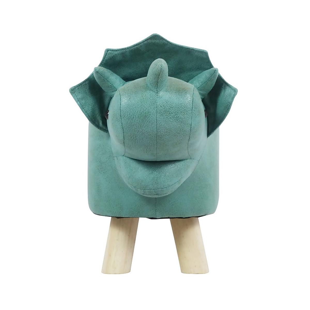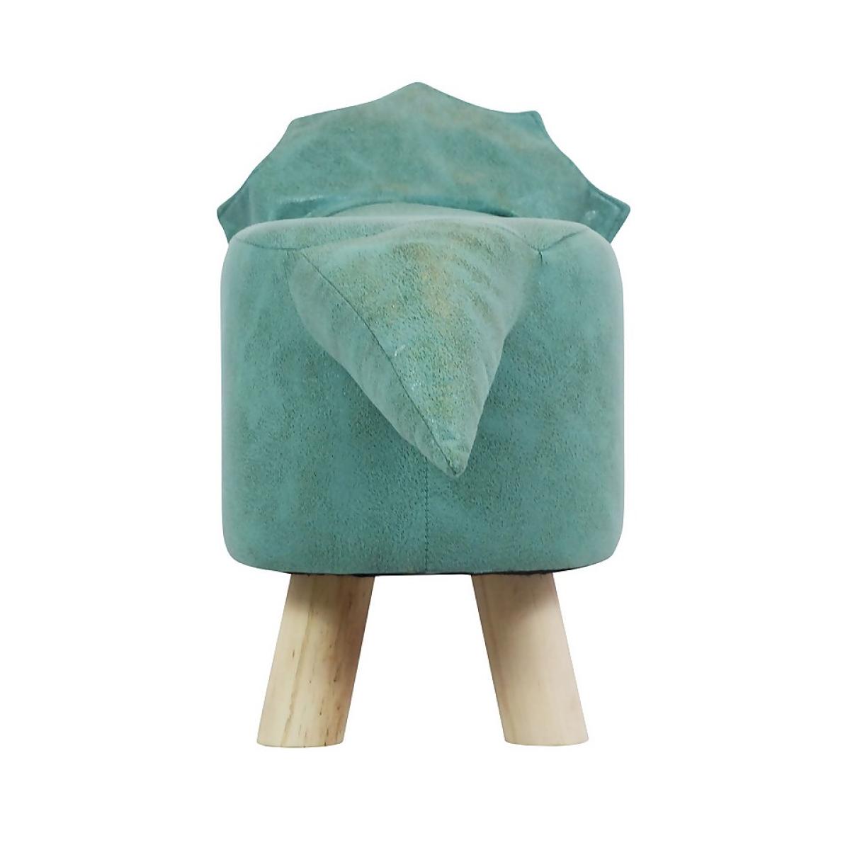 The perfect pal for sitting on when it's time for putting on shoes, this fun little Dino stool makes a great accessory for any kid's bedroom or playroom. Soft and cushioned, it's covered in green velvet with chunky wooden legs.