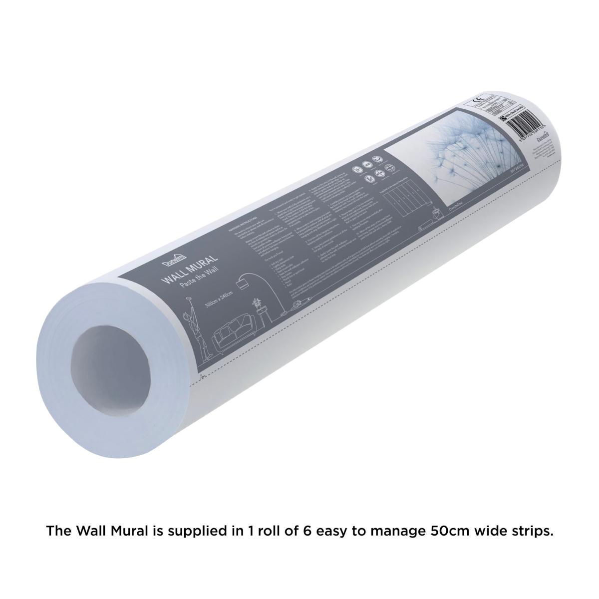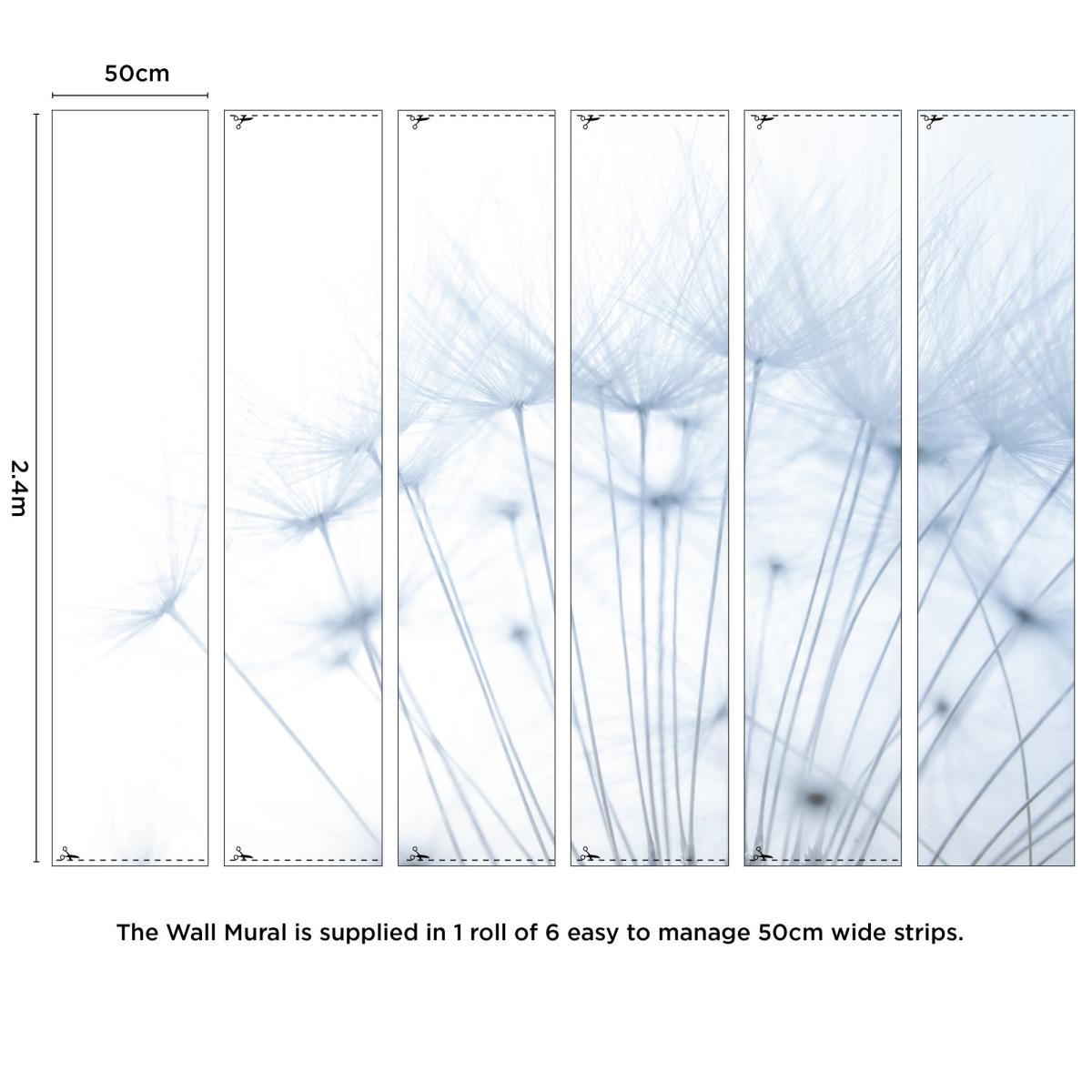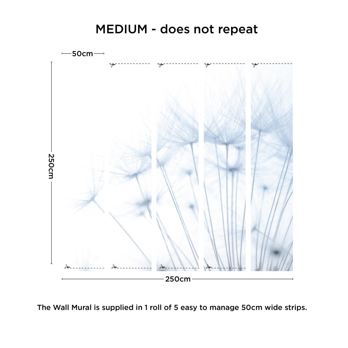 Featuring a gorgeous dandelion design, this stunning mural would make for an airy and stylish feature wall. This mural also boasts easy paste the wall application and a wipe clean surface. Repeat Pattern Information:. Medium: Does not repeat. Large: Repeats after panel 6. Extra Large: Repeats after panel 7.