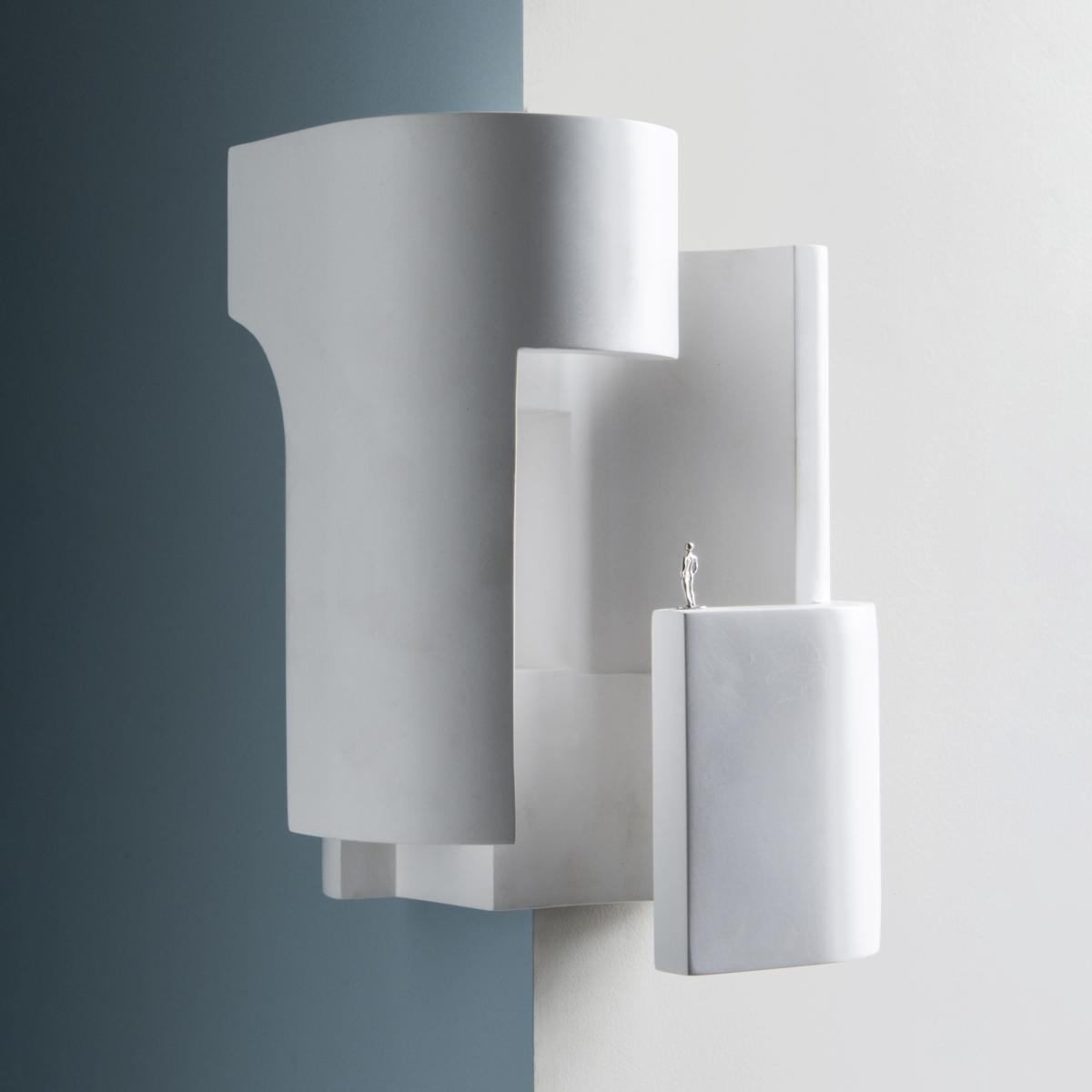 Born in Beirut, Lebanon, designer Charles Kalpakian drew his inspiration from his French and Lebanese roots, as well as from street-art culture. His projects always highlight the wealth of his origins, combined with elements of Western modernity. His SOUL (Souvenir Of United Lebanon) wall light collection is a poetic representation of his childhood in Lebanon. Childhood, education, games and dreams: for Charles Kalpakian, Lebanon was a paradox of freedom, as soon as school finished, to run and play in a city in tatters. These were the memories that he manifested in the SOUL collection. Metal narrative elements of a memorial biography that can be observed through the eyes of little people (adjustable), SOUL is a series of six plaster wall lights that can resemble those little beams of light that break through the darkness in dark alleyways, creating a magical aura. The Soul wall lights come in white plaster, with or without gold leaf decorative elements. A corner version is also available, perfect for lighting corridors. Charles Kalpakian: "To me, each journey has its own "light", as it evokes a place at a given moment. A desire to capture emotions and make them visible, like a painting, a drawing that you never tire of looking at." Installation If it's possible to install an electrical socket in the corner: the electrical socket must be placed on the wall 6 cm from the corner, on the right-hand wall only. If it isn't possible to install an electrical socket in the wall, an opening has been included in the attachment panel and the lamp so that a wire can be fed through : compatible electrical cable sold separately.