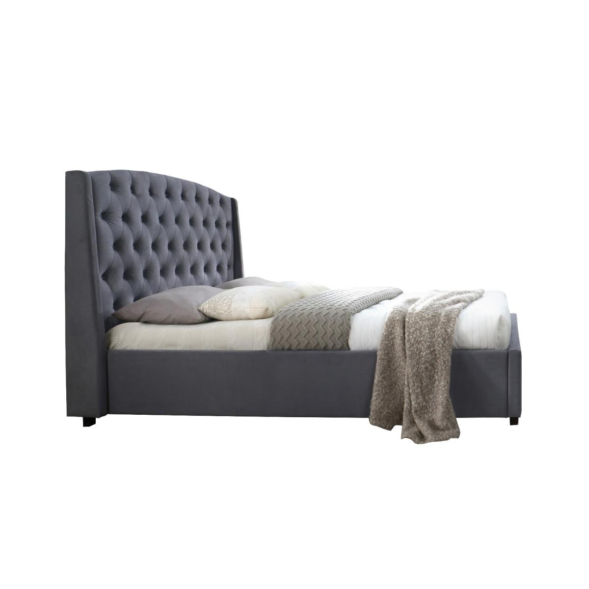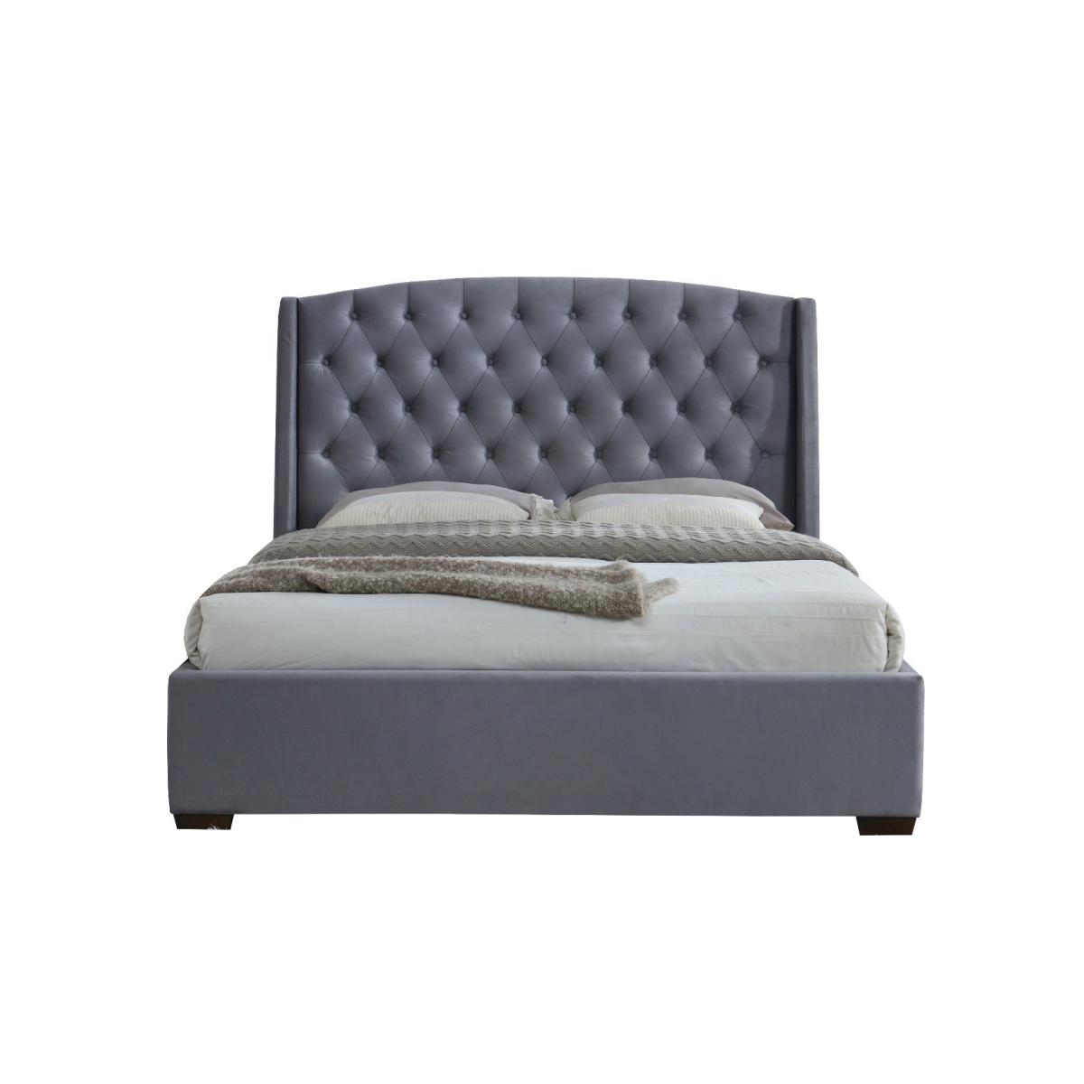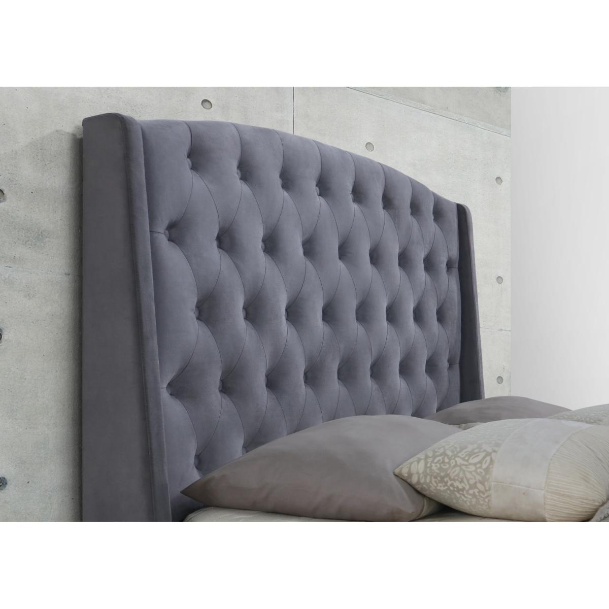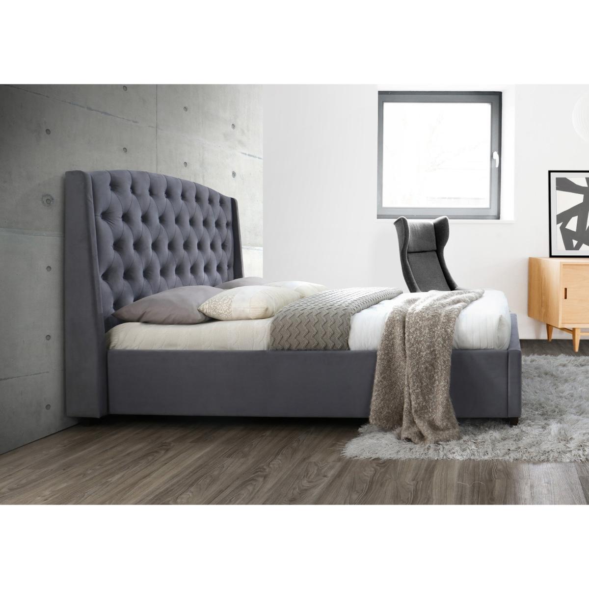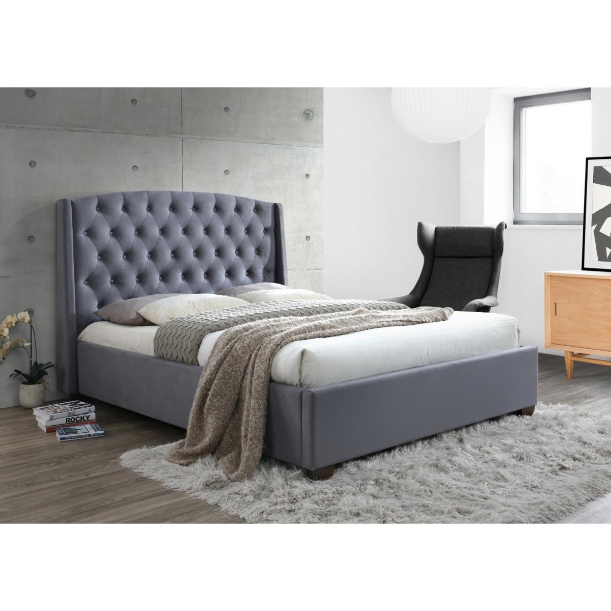 A true style statement, the elegant Danica bed from Birlea makes a magnificent centrepiece. The large wingback headboard has stunning tufted detailing and the grey velvet upholstery is truly luxurious. This bed is available in three sizes.220cm in length. Wingback headboard Sprung slatted base for natural bounce. Easy to assemble