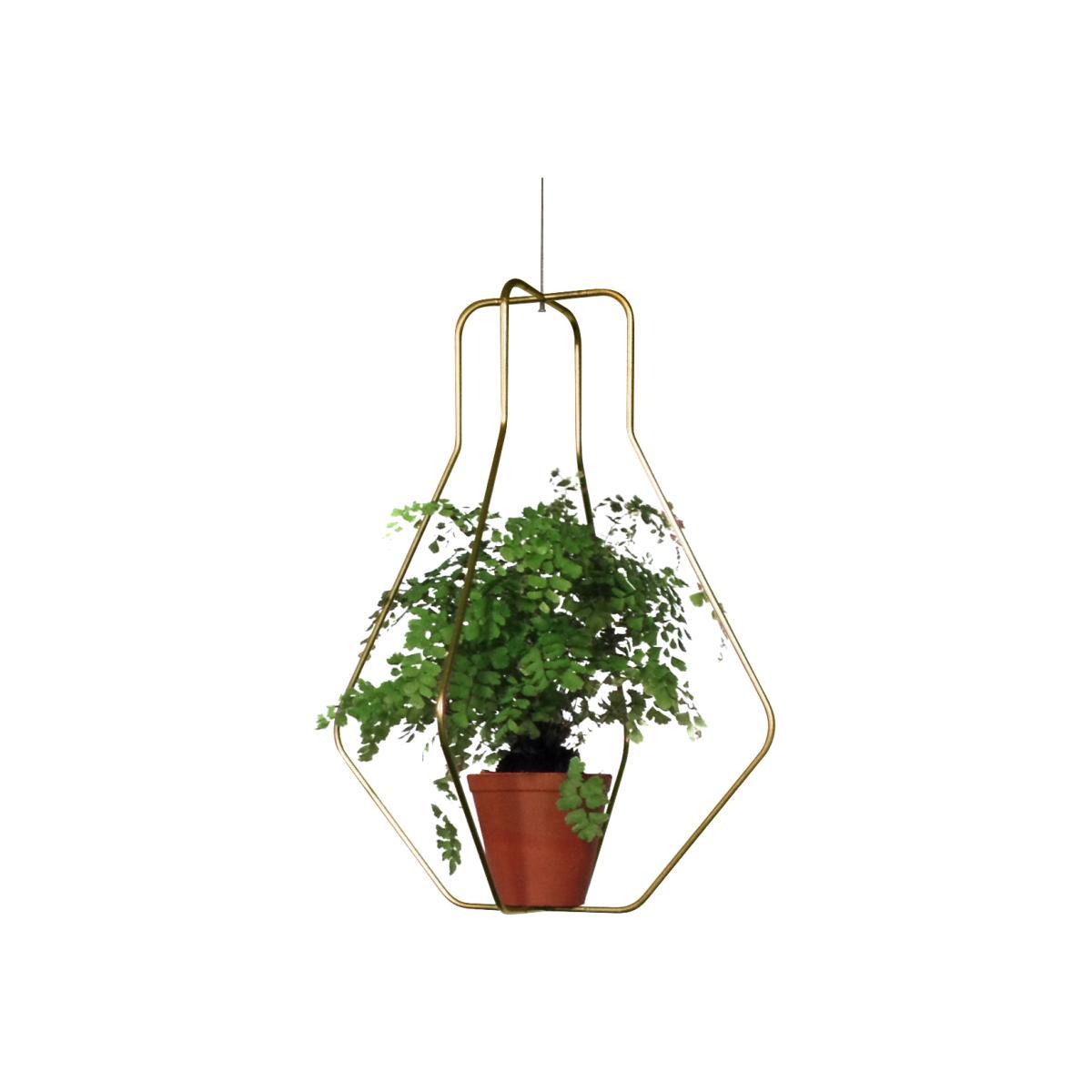 Like a metal sculpture, an hanging holder for flowerpot. An original way to expose your plants. Indoor or outdoor use.