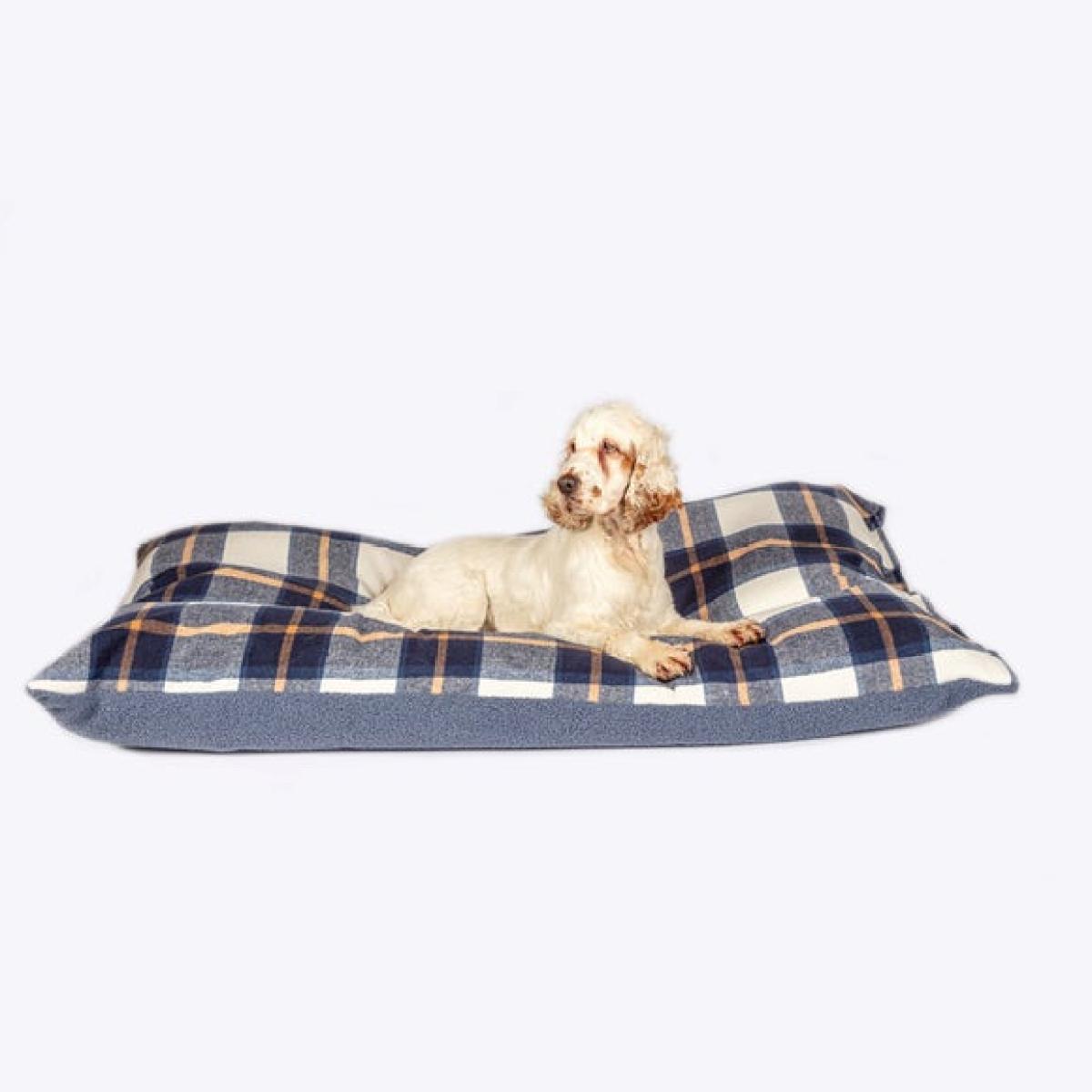 * Soft wool effect dog bed * Fibre filled * Machine washable cover This mattress-style bed combines a soft wool-effect check with cosy boucle fabrics to create a snug and supportive place for your dog to rest. Generously filled with 100% recycled fibre, it offers a comfortable and eco-conscious choice for pet owners. The textured outer adds a touch of homeliness, while the classic pattern blends seamlessly with most interiors.