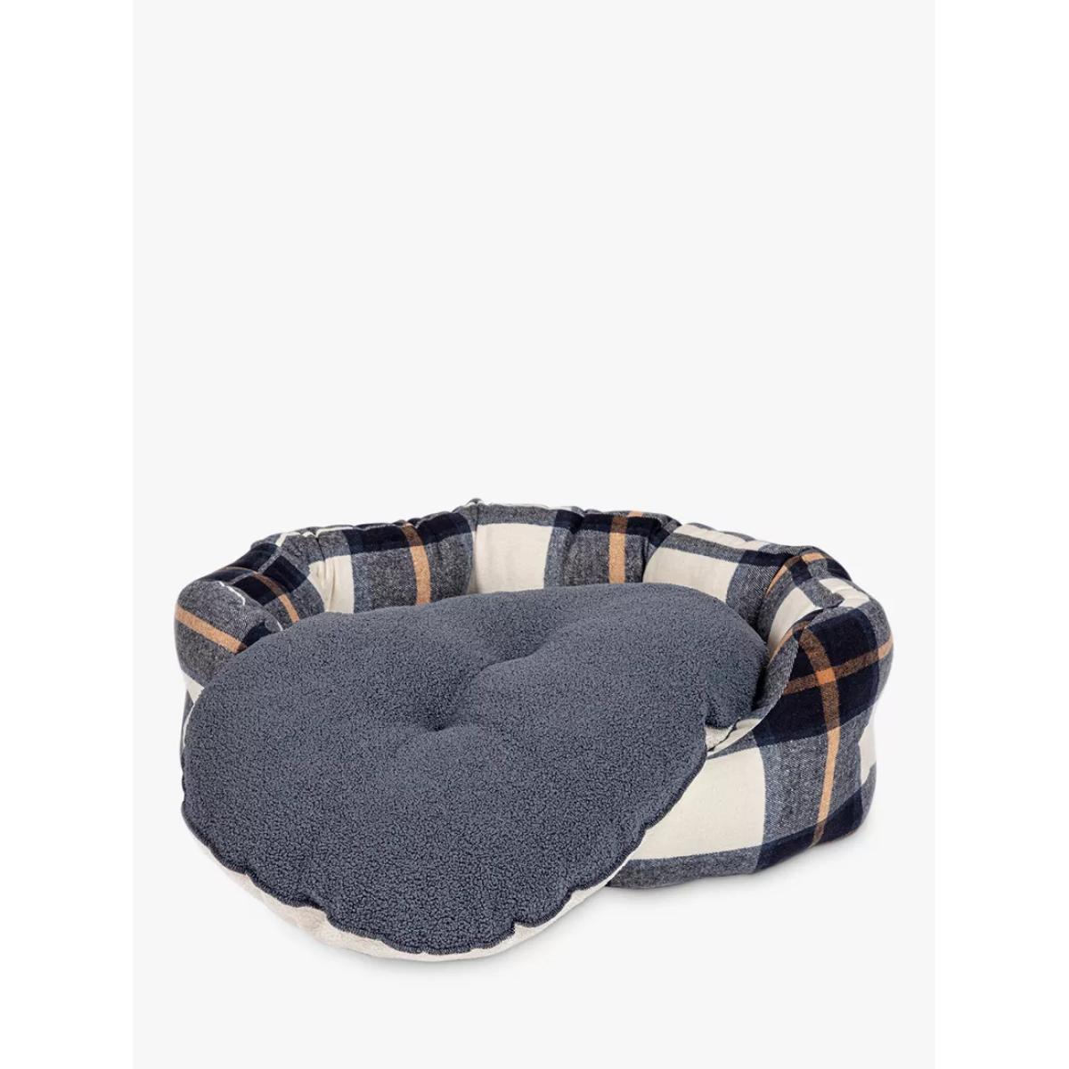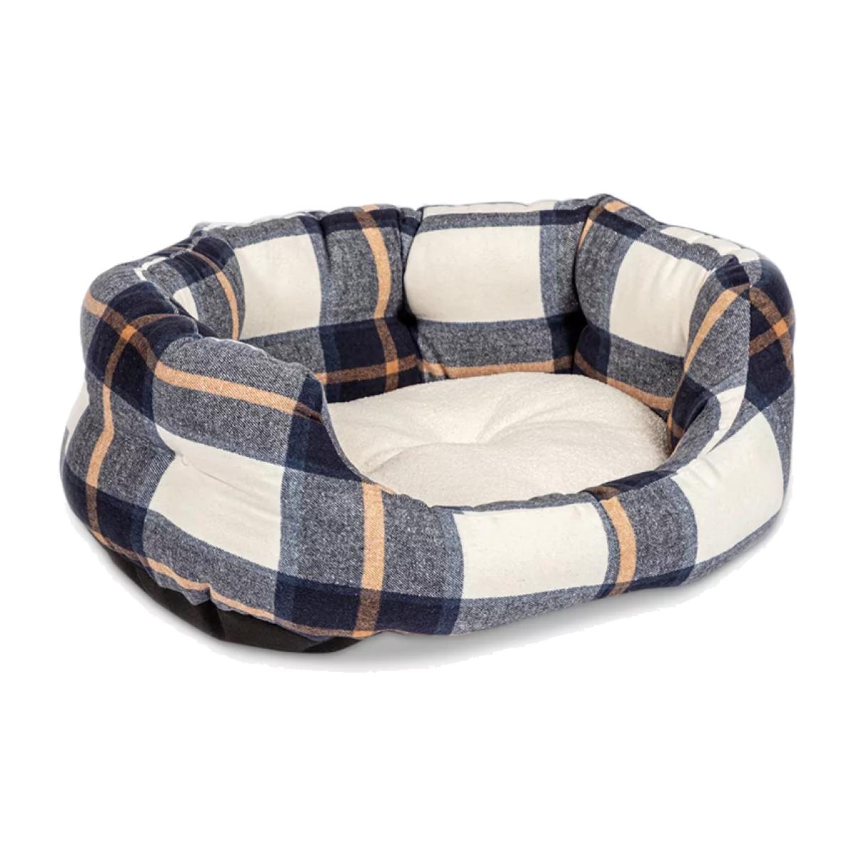 The deluxe slumber bed offers your furry friend the perfect place to snuggle up, with soft high sides for optimum warmth and the ideal head rest! This Bowmore bed features a combination of soft brushed wool effect check fabric and fuzzy textured boucle fabrics, for a sumptuously snug feeling. The bed is filled with a soft and fluffy polyester fibre filling which provides a lot of warmth and comfort. Made from recycled PET flake, made from recycled plastic bottles which are cleansed, shredded and heated to form fibres. The filling is fire retardent to British Standard 5852.