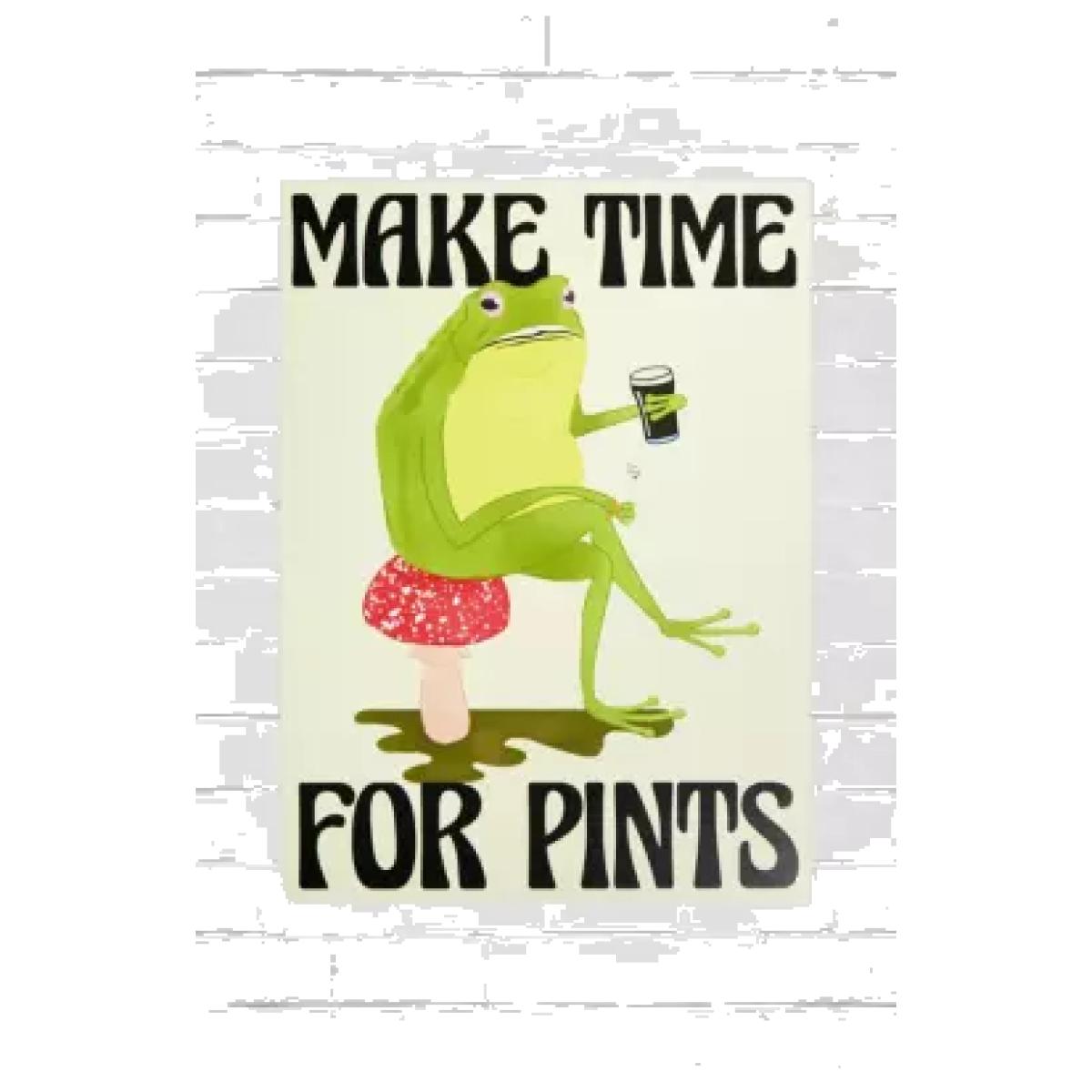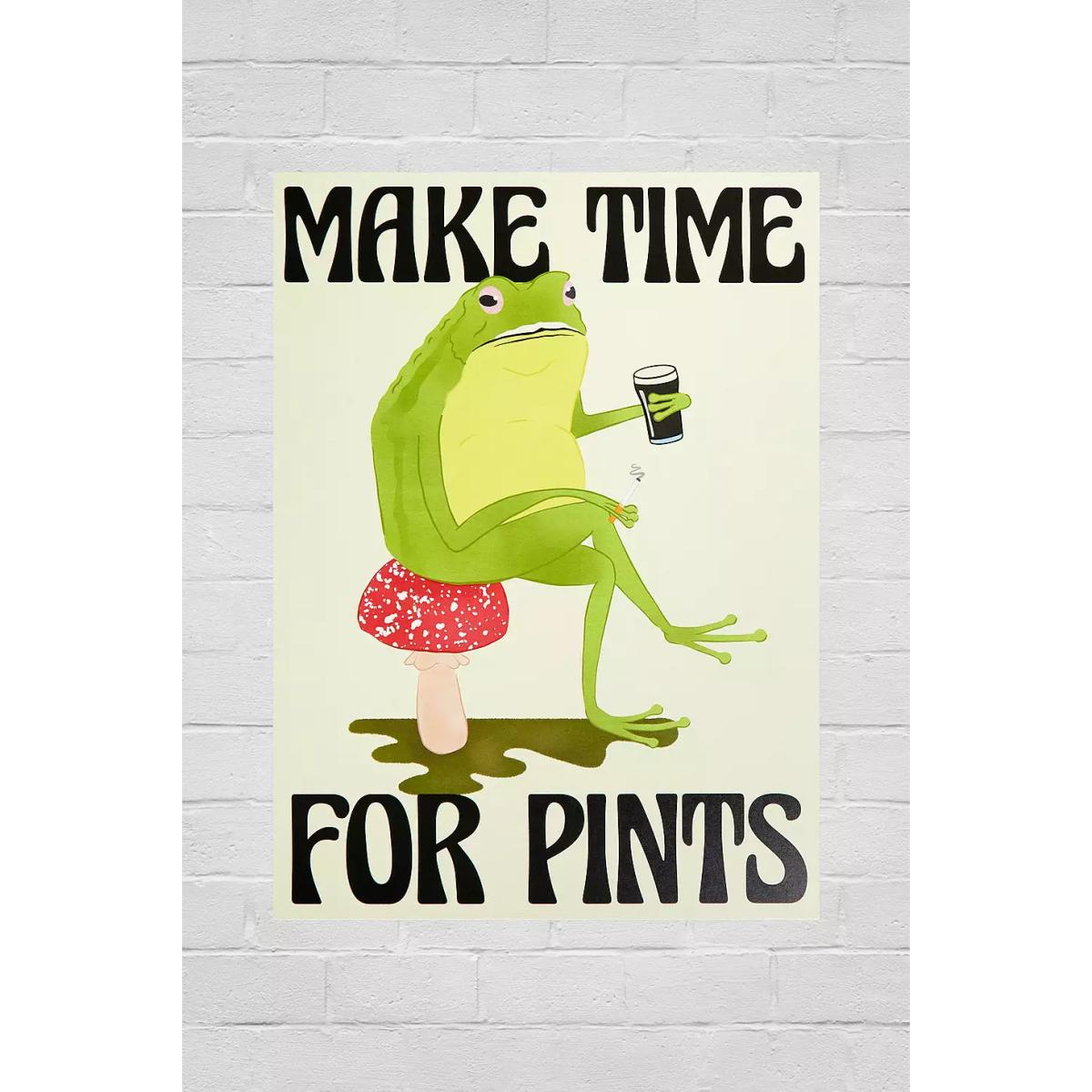 Make time for pints with this cute froggy print by Danny Issues. The poster features an illustrated frog and mushroom motif with a 'Make time for pints' slogan. Comes unframed, perfect for your gallery wall. **Content + Care** \- Paper \- Wipe clean **Size** \- 30cm x 40cm