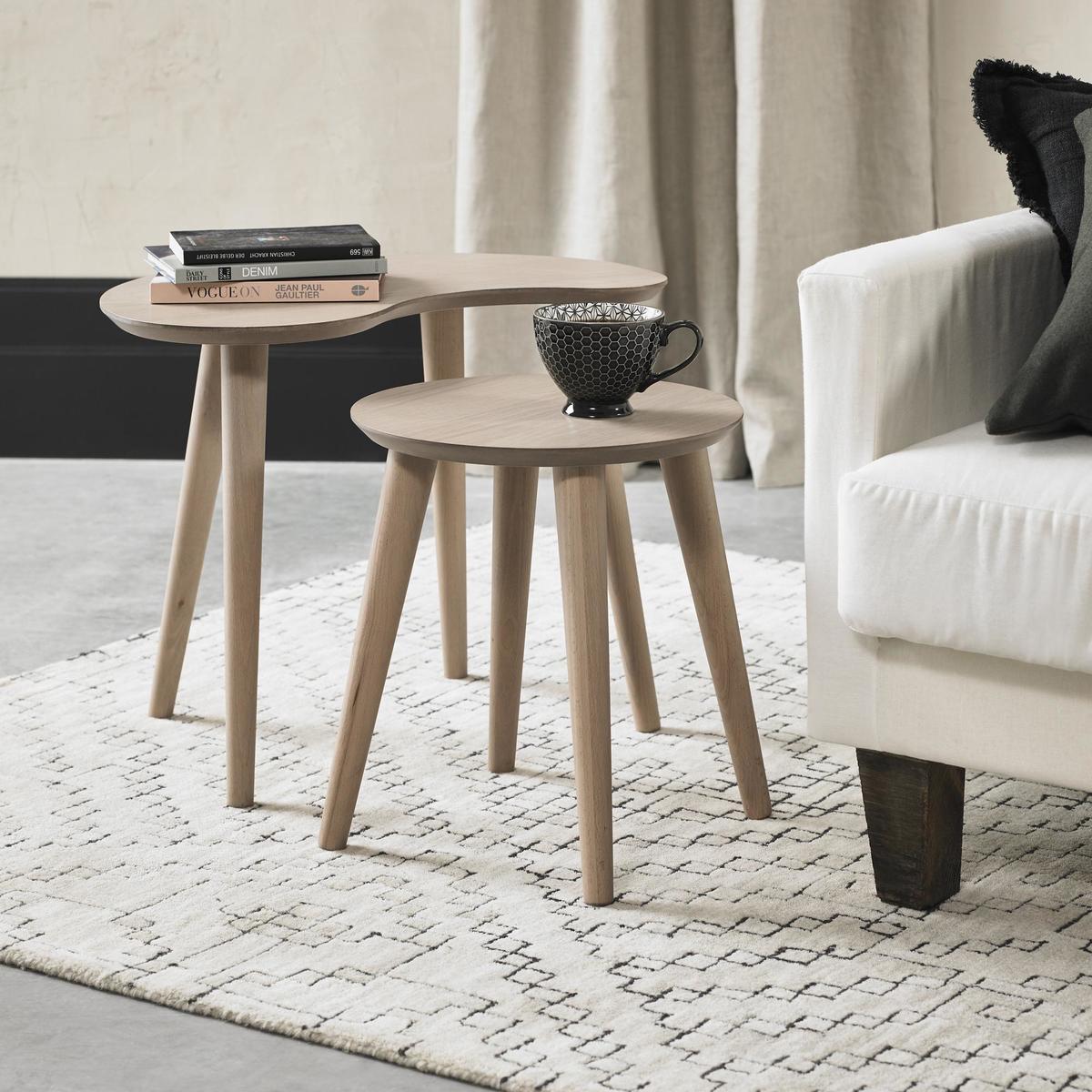 I love this set of nest tables because of their clean, minimalist design and versatile natural wood finish. They work well in a variety of interiors, from Scandi-inspired spaces to more traditional settings, adding warmth without overwhelming the room. Their nesting feature offers practical flexibility-perfect for small living areas or as extra surface space when needed. For styling, try grouping them together for a cohesive look or use the smaller one alongside a sofa or armchair to hold a lamp, book, or decorative piece. To keep the aesthetic fresh, pair with other natural materials or muted tones, and remember that their neutral palette makes them a subtle yet stylish addition to any room.