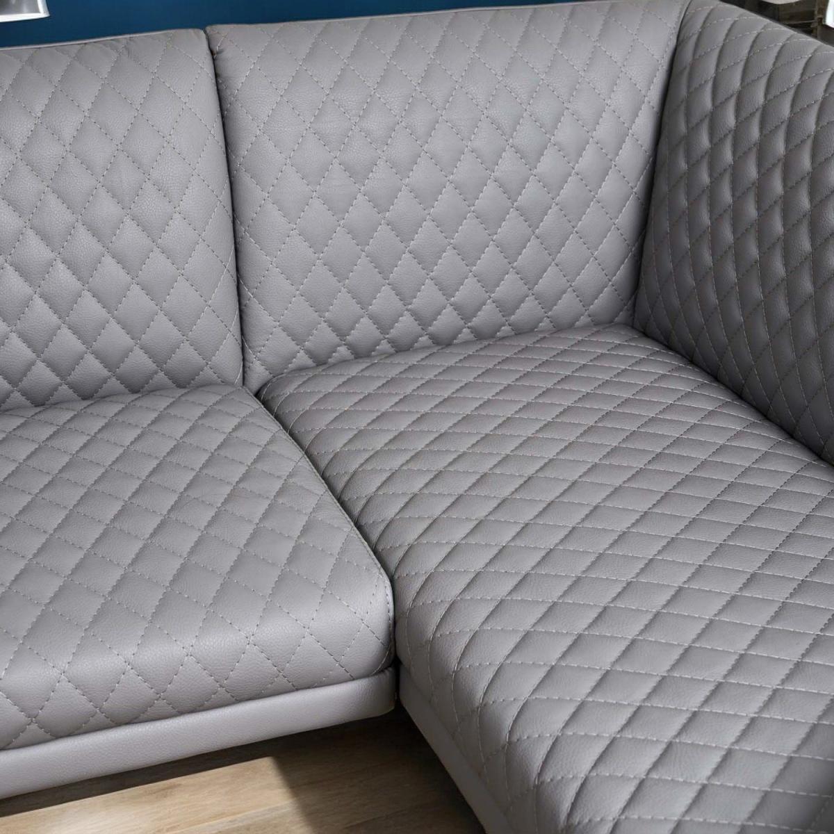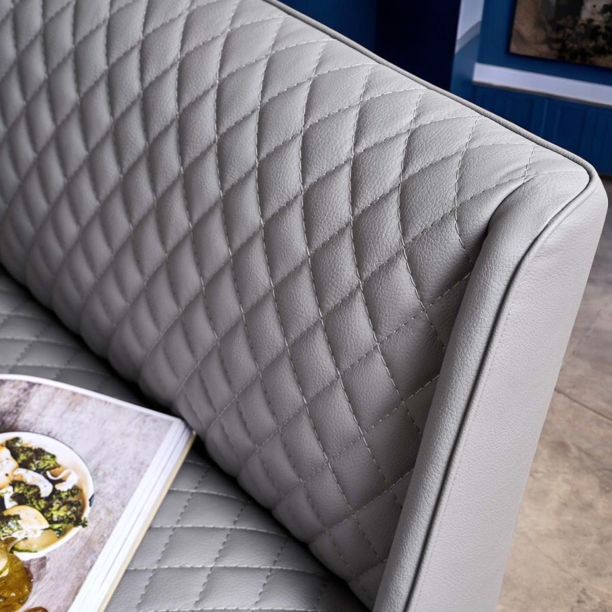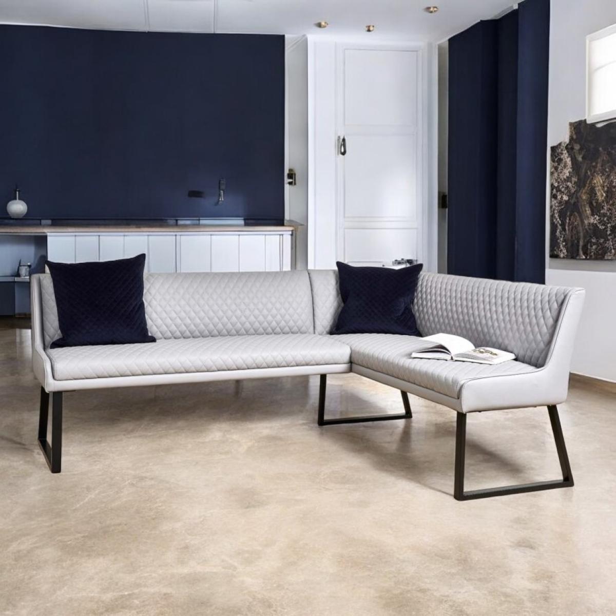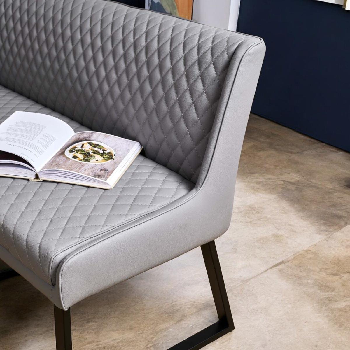 The Dante Corner Bench is available in both left and right hand facing configurations. With its smooth and soft diamond stitched light grey faux leather upholstery, the bench is a stylish addition to the dining space. It pairs perfectly with the Dante Dining Table, and equally works well with a whole host of other dining table styles available.