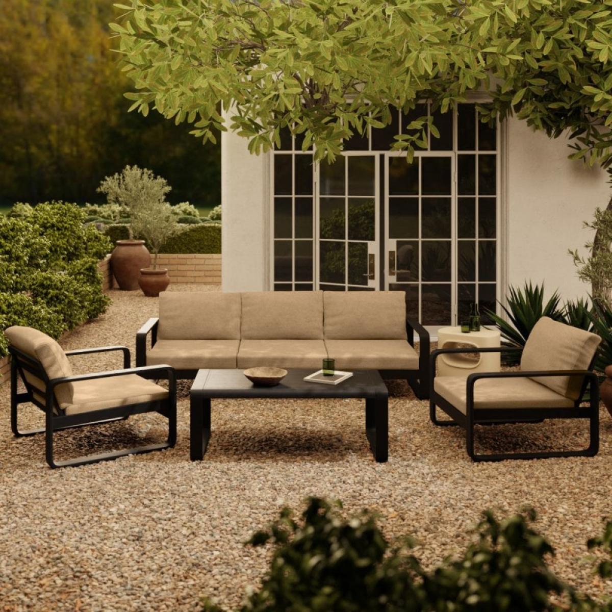 Dante Garden Lounge Set, Beige & Charcoal Black