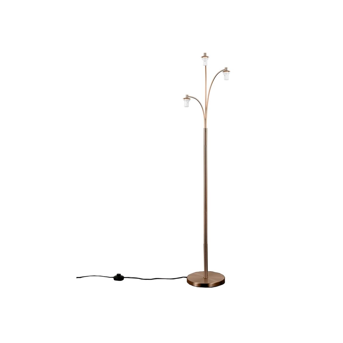 Modern designer style curve floor lamp base in a polished copper effect metal finish. This contemporary floor lamp base is guaranteed to make a statement in any home. As this is a lamp base only it allows you to pair it with 3 x shades of your choice making it perfectly suited for any decor. Ideal for lounges, dining rooms, bedrooms and other living areas.
