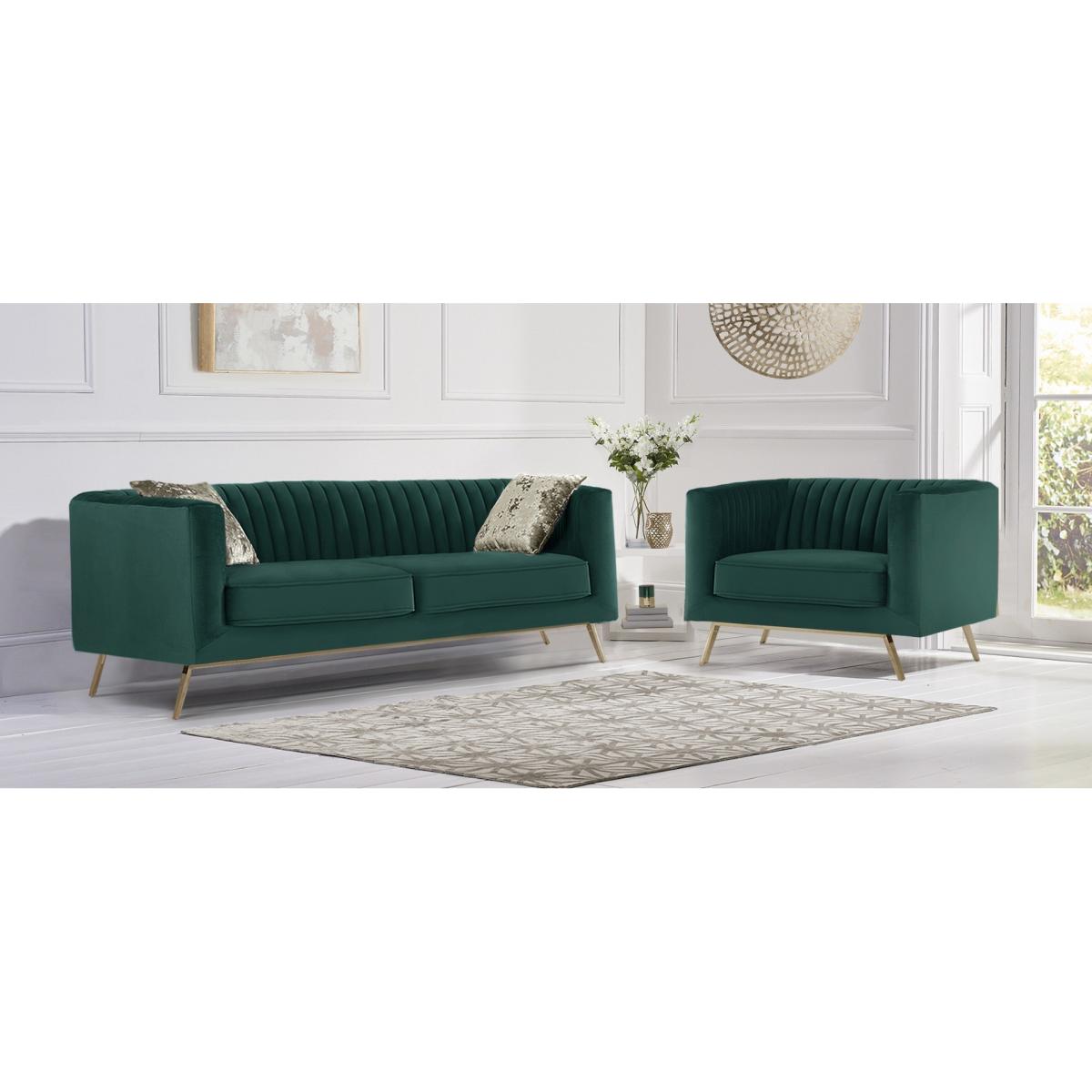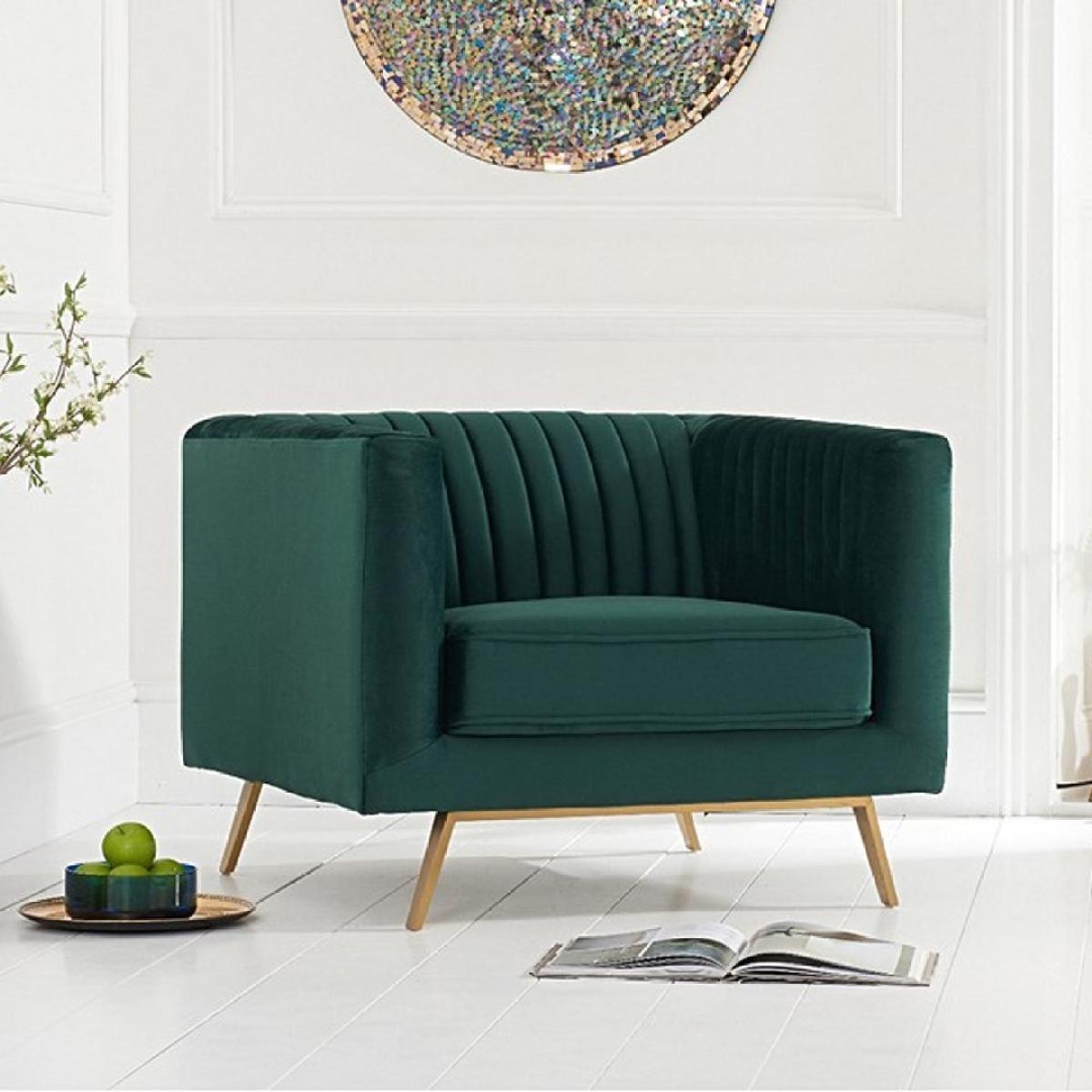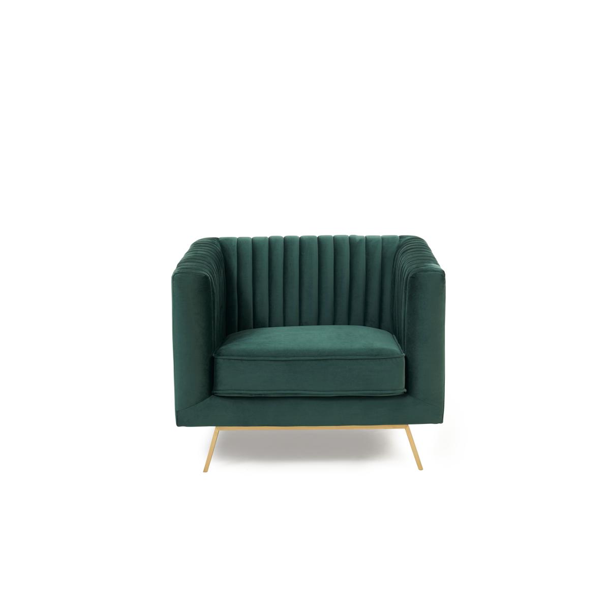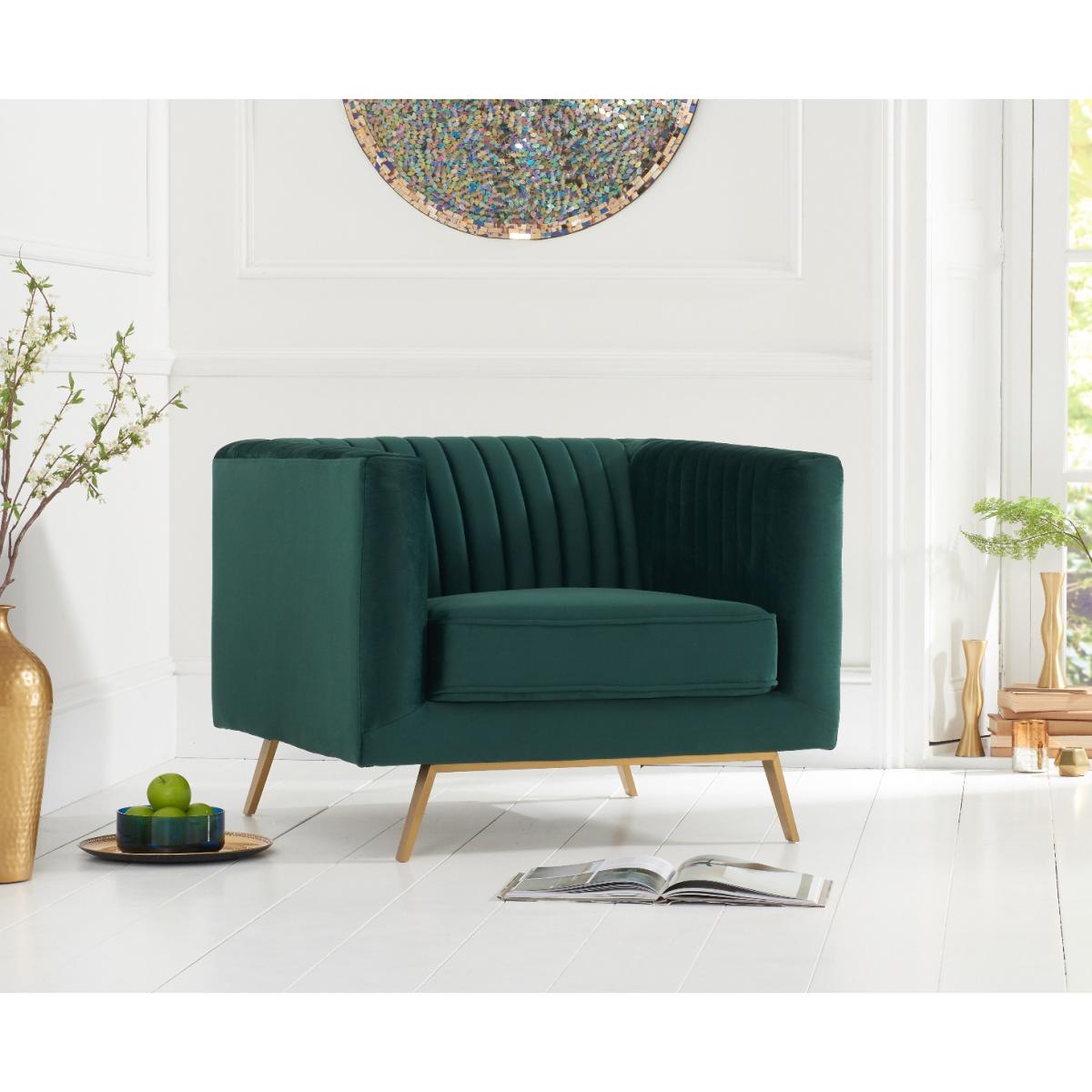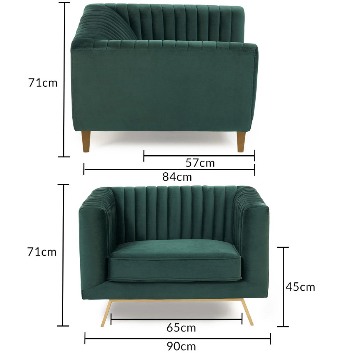 Featuring a stylish retro design, the Danube Green Velvet Armchair brings a touch of vintage glamour to any home. Upholstered in sumptuous green velvet, the luxury armchair features a ribbed design on the backrest and is complete with a comfortable deep foam filled seat cushion. The Danube Velvet Armchair is also available in grey. Seat Measurements:W:65cmD:57cm H:17cm