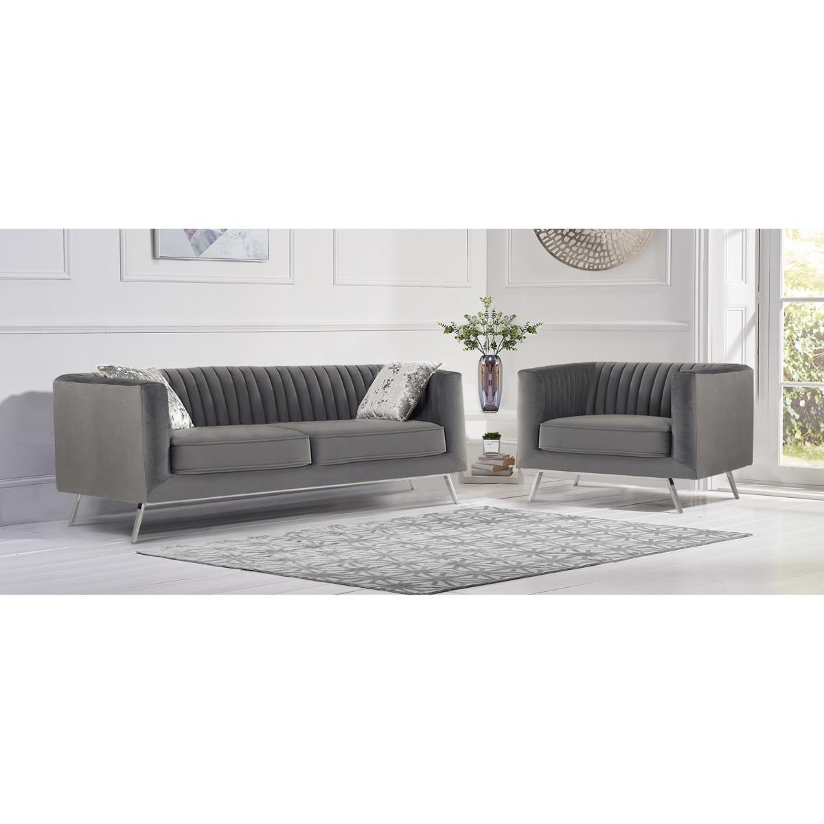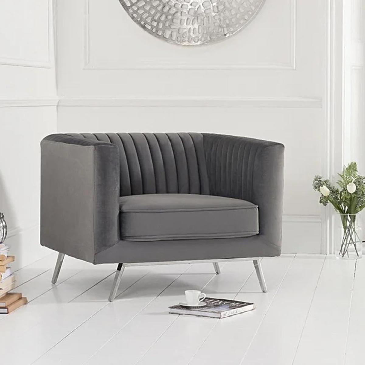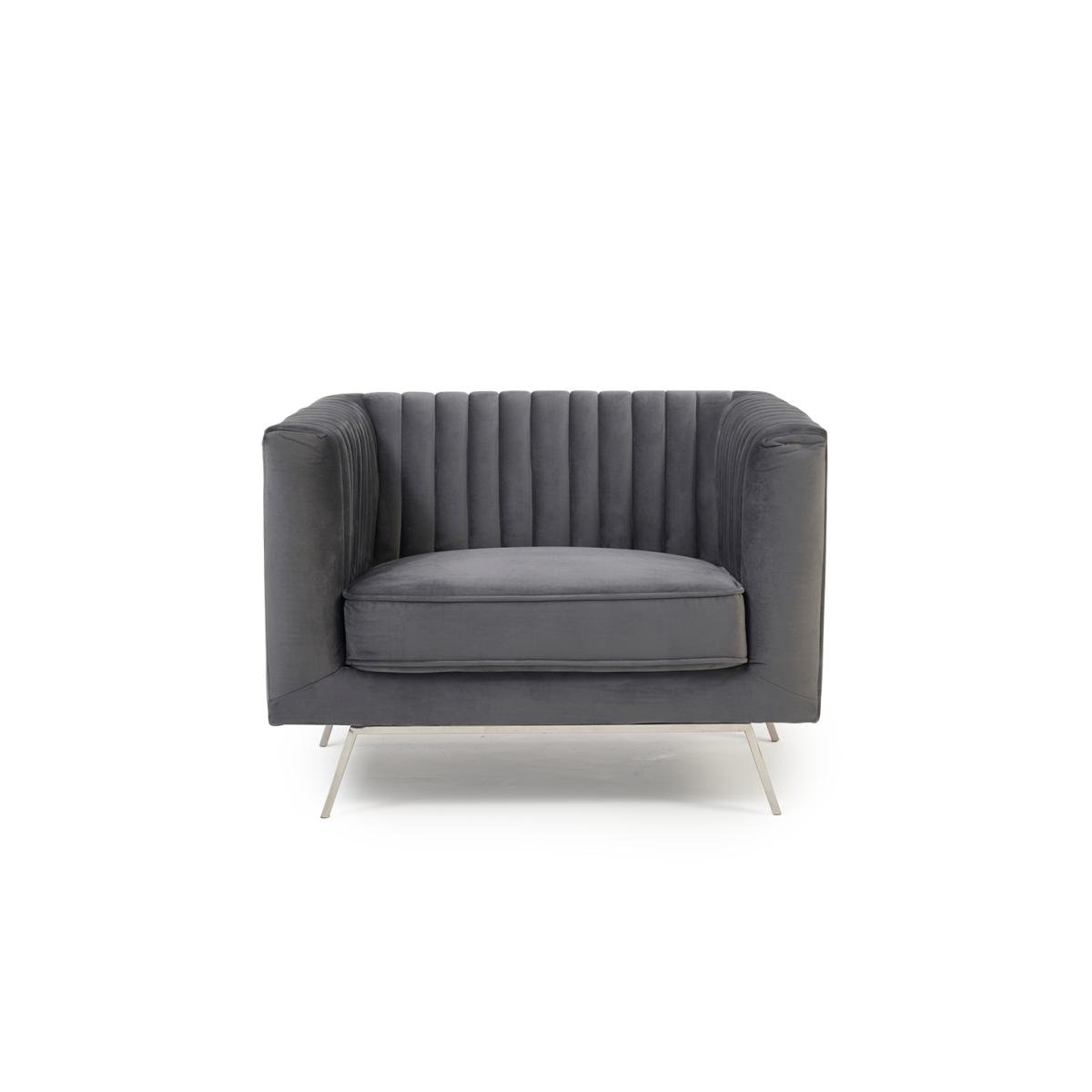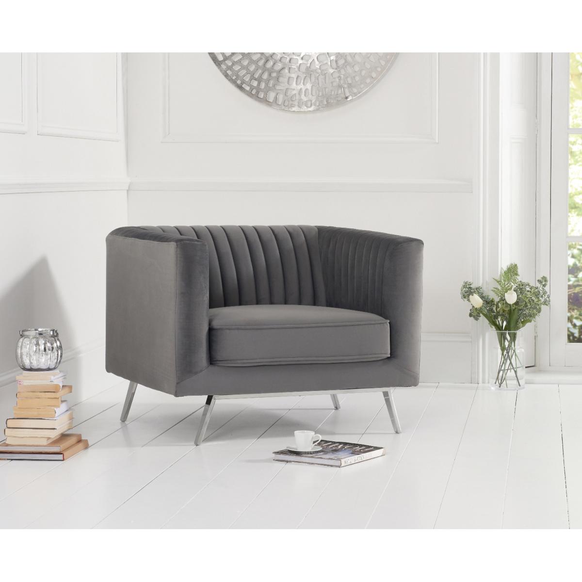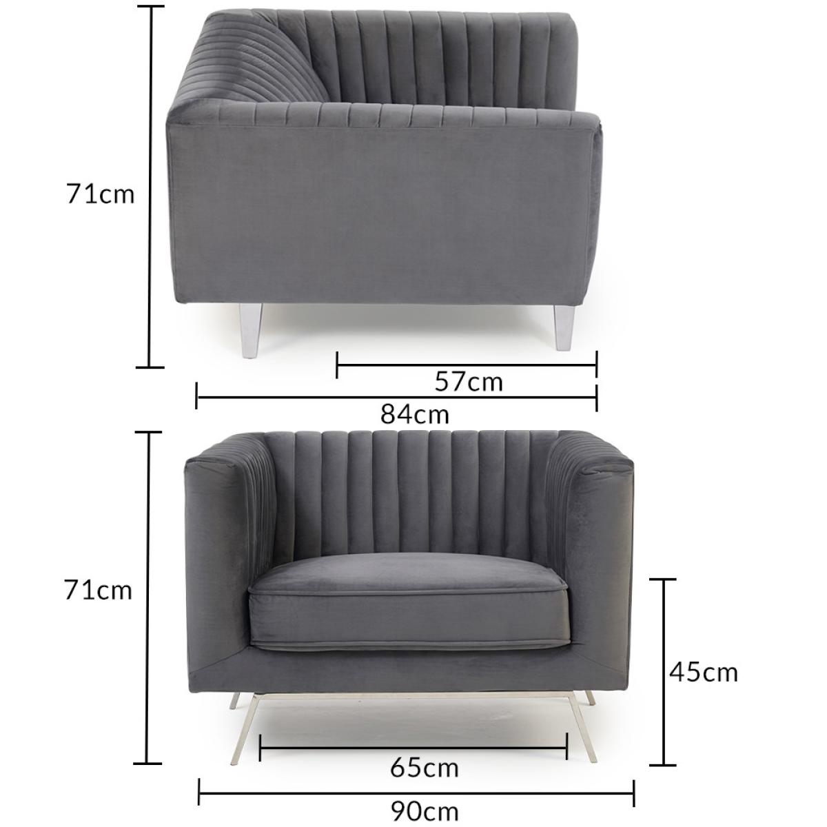 The Danube Grey Velvet Armchair brings a touch of vintage luxury to any home. Upholstered in smooth grey velvet, the chic armchair features a retro-inspired design that adds plenty of character to your living room. The green velvet armchair features a ribbed design on the backrest for a stunning vintage look and is complete with a deep foam filled seat cushion for a comfortable sit. The Danube Armchair is also available in green velvet. Seat Measurements:W:65cmD:57cm H:17cm