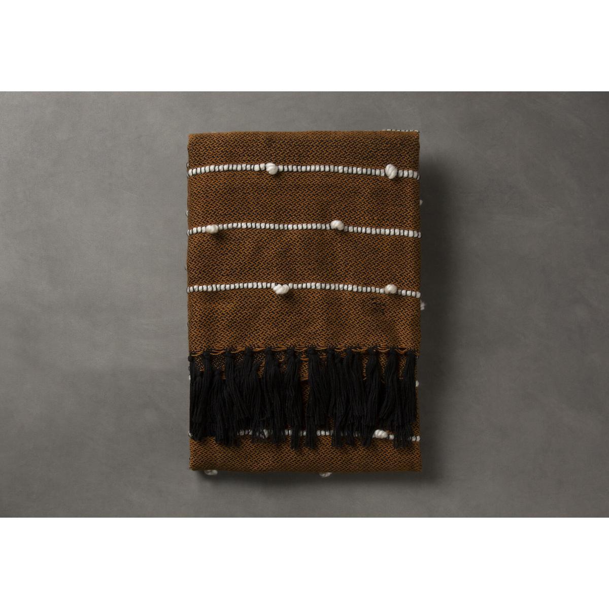Whether you're looking to snuggle up or just add some personality to your living space, our throws are the perfect answer. Featuring soft black tassels on the edge and white linear stitching on the walnut coloured fabric, the Danyel Tassel Throw screams trendy. Casually placed over dark coloured upholsteries, you have the perfect setting for a fireplace-like aura.