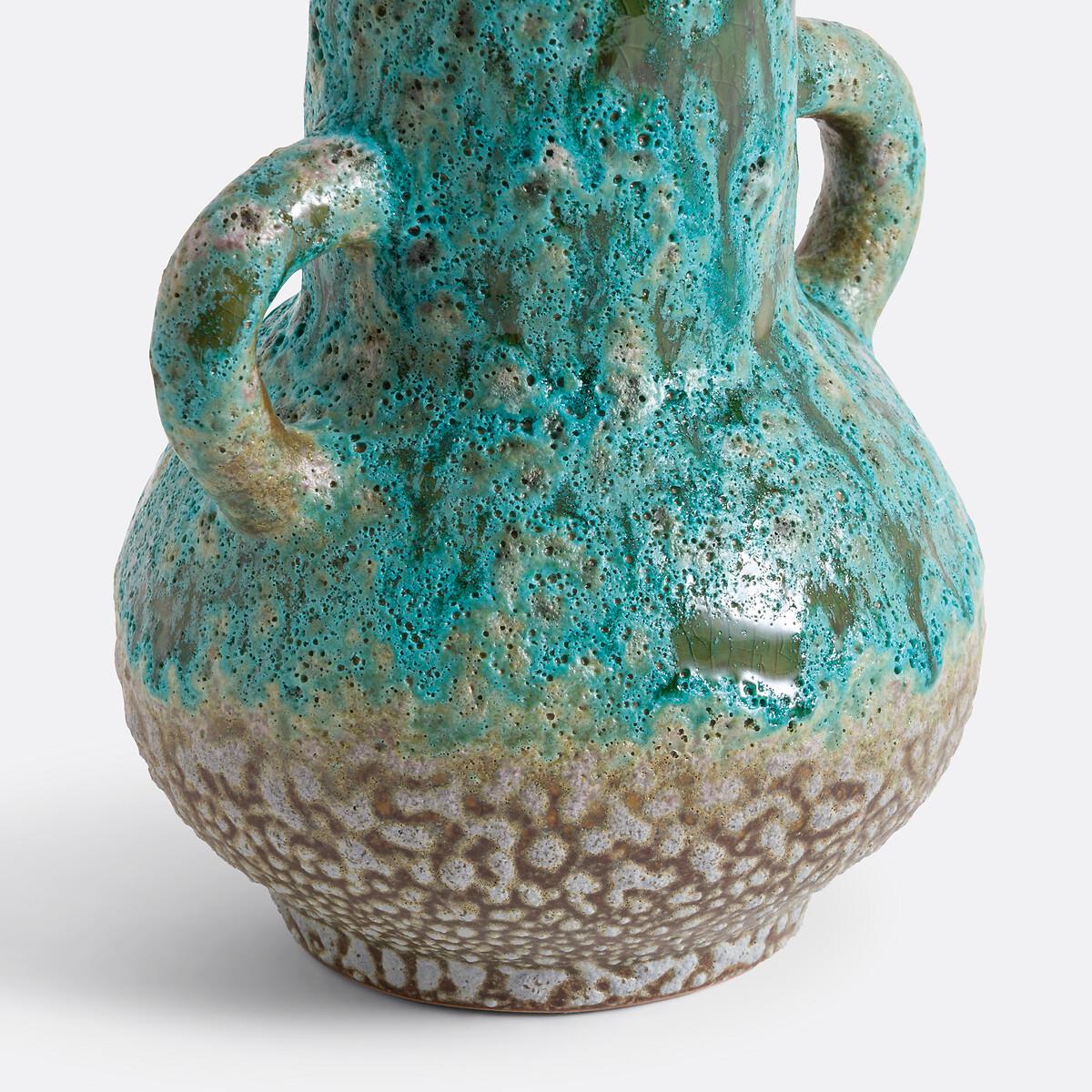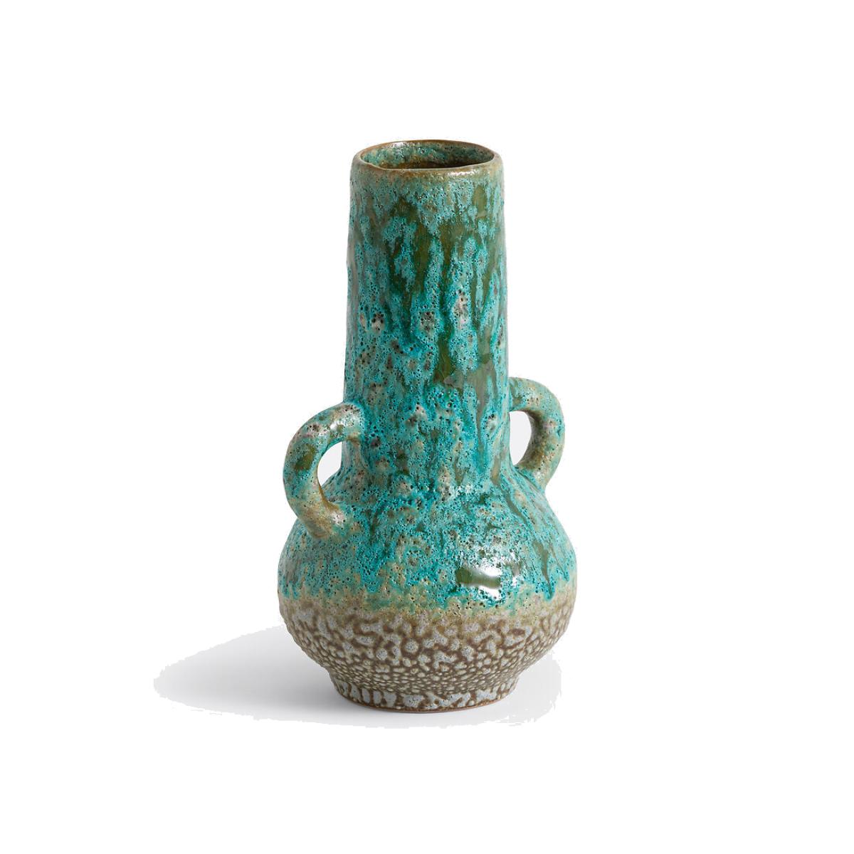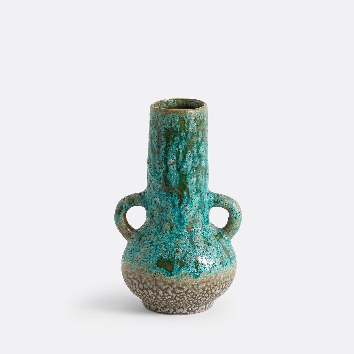 Inspired by primitive art, the Daoma textured ceramic trinket combines sculptural aesthetics and mineral colours. Alone or with others, it will bring character to your home. Product Details • Made from enamelled ceramic • 2 handles • Hand-crafted, each piece is unique: colours and dimensions may vary from product to product • Shipped in packaging specifically designed to avoid any risk of breakage. Dimensions • Width: 14cm • Height: 26cm • Depth: 16cm • Diameter of opening: 6.9cm
