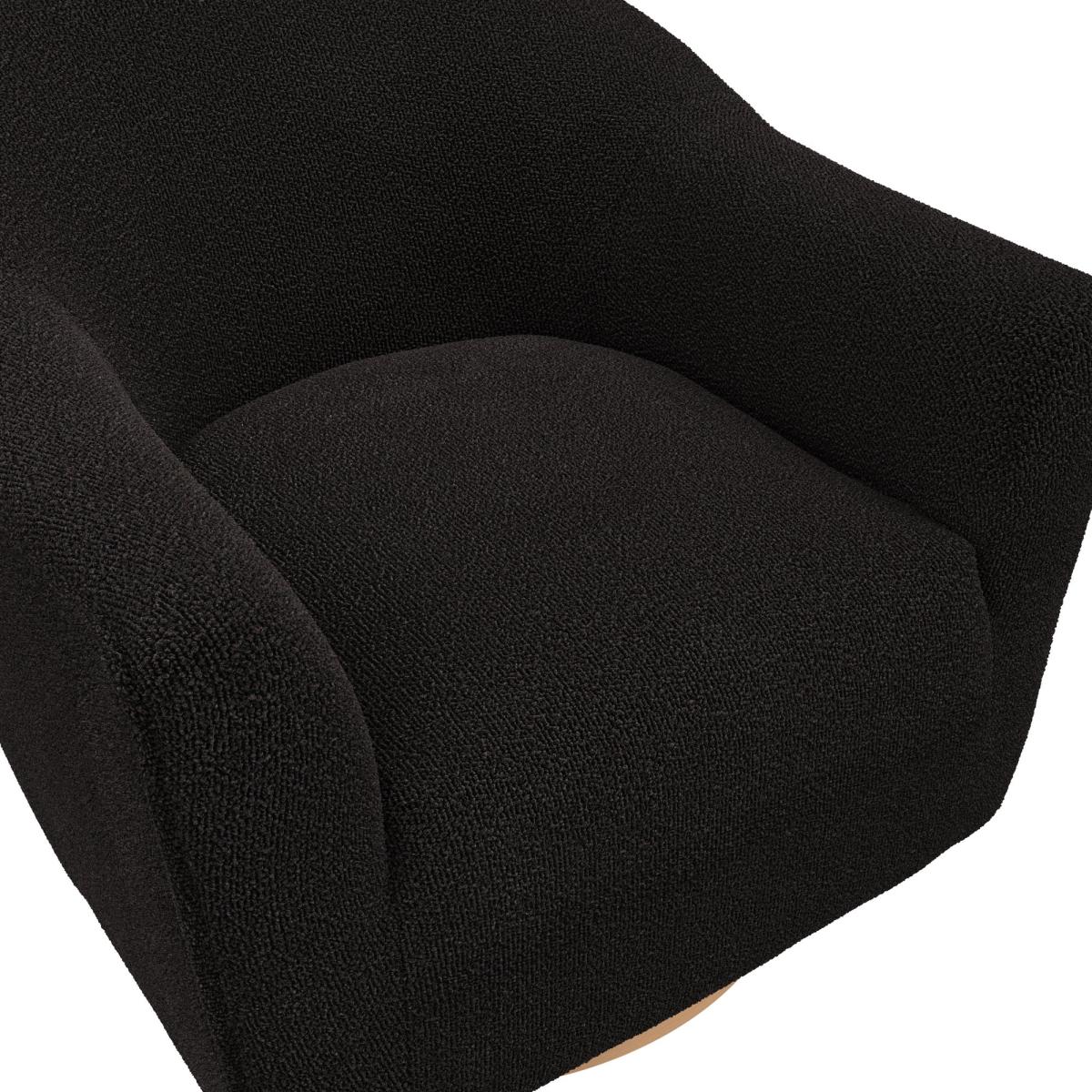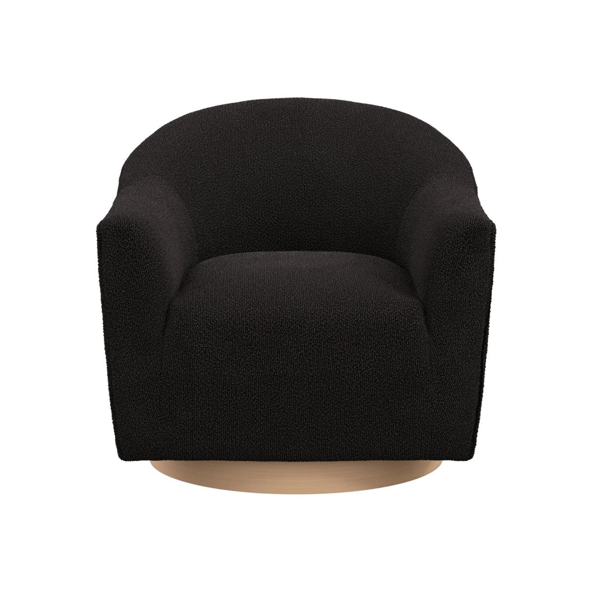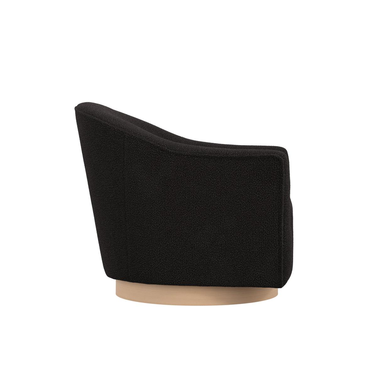 * Wood-effect base* Textured upholstery* Swivel feature* Curved shape* Versatile piece perfect for a bedroom or living room The Daphne Boucle Swivel Chair features a wood-effect base and black textured upholstery, complemented by a versatile swivel function. Its curved shape makes it a perfect addition to both bedrooms and living rooms.