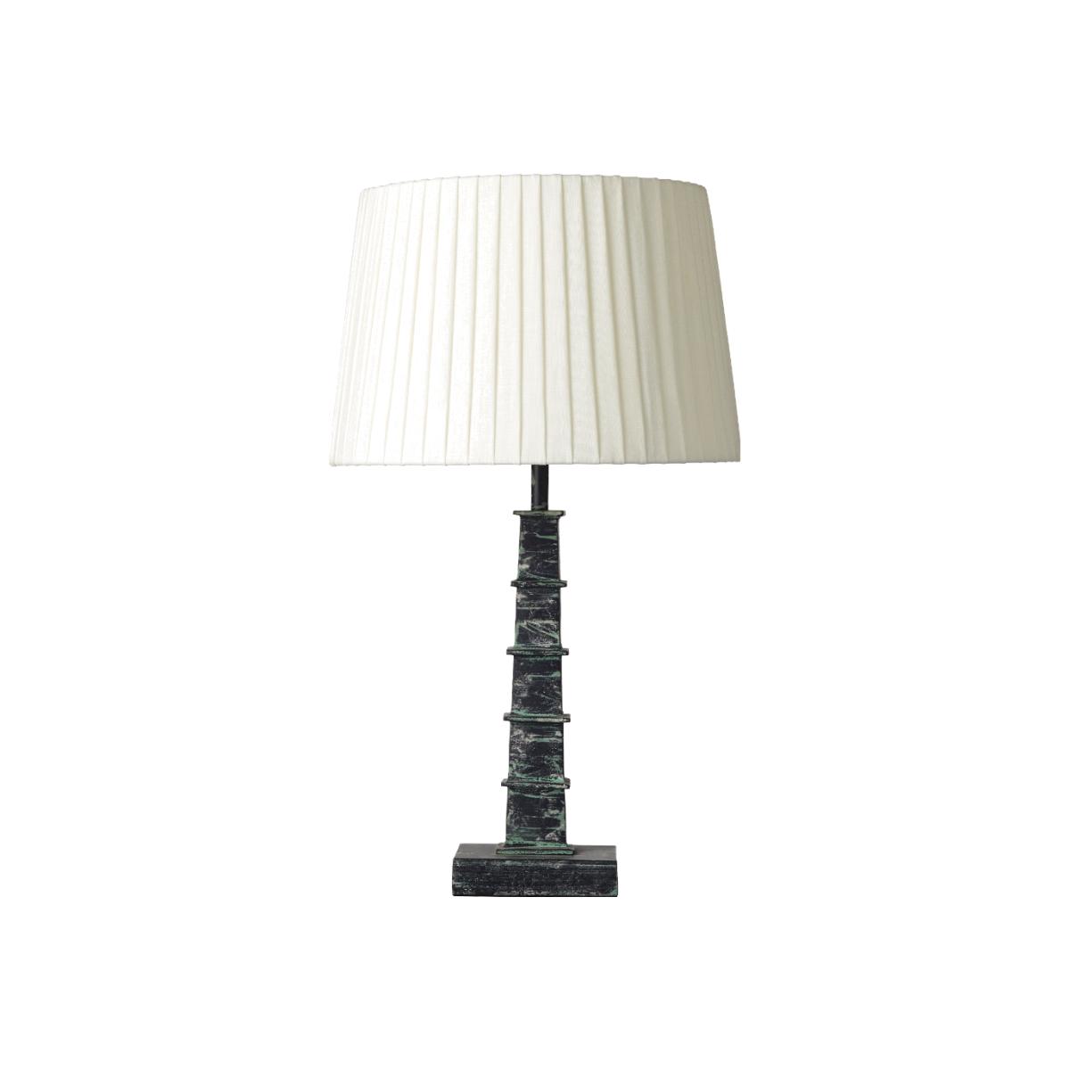 Small enough to be used as a bedside lamp, this Chinese-inspired lamp adds a decorative touch to any scheme. Handmade from aluminium, it's available in three antique finishes. We recommend using a 30cm diameter shade with this lamp. Daqin Lamp - Antique Green
