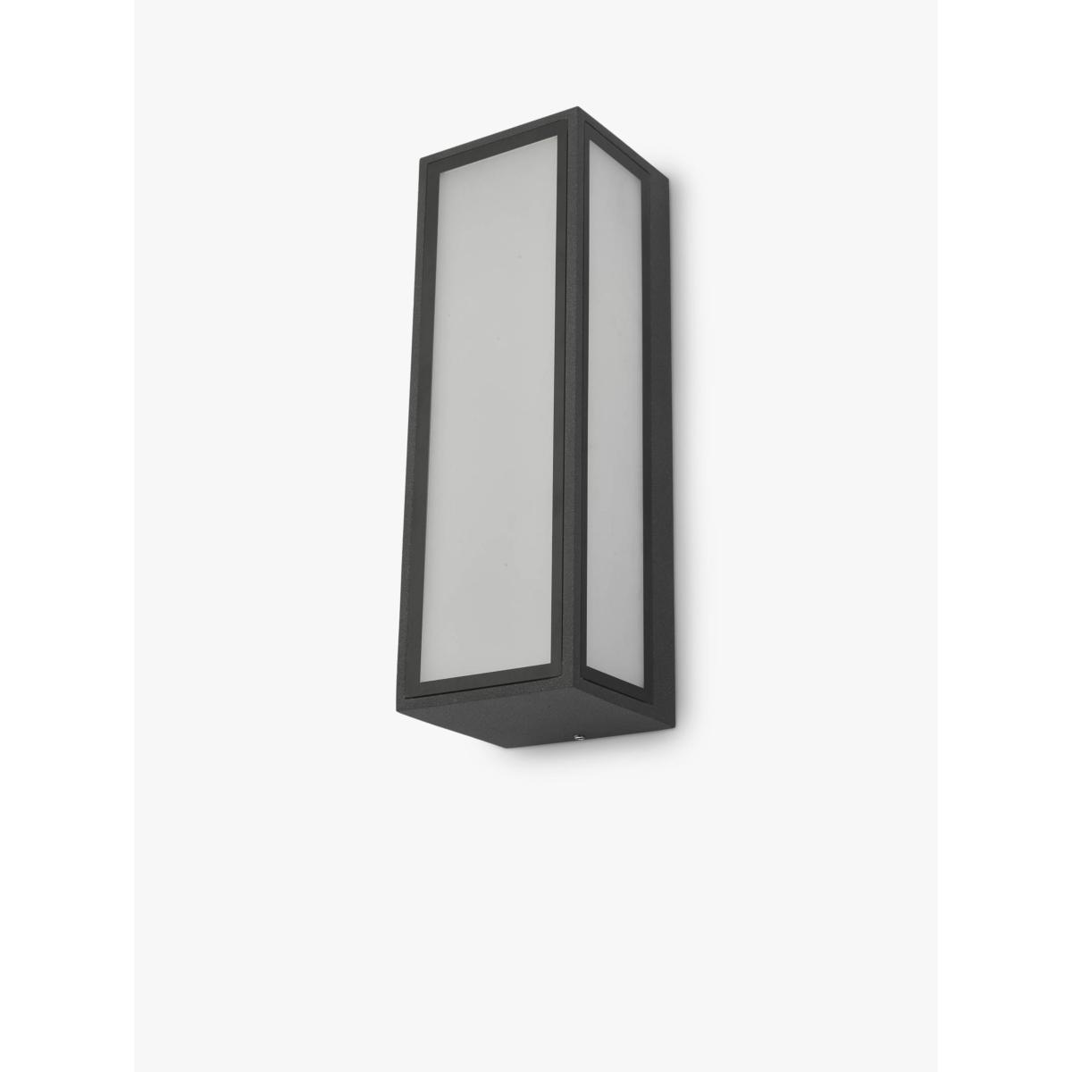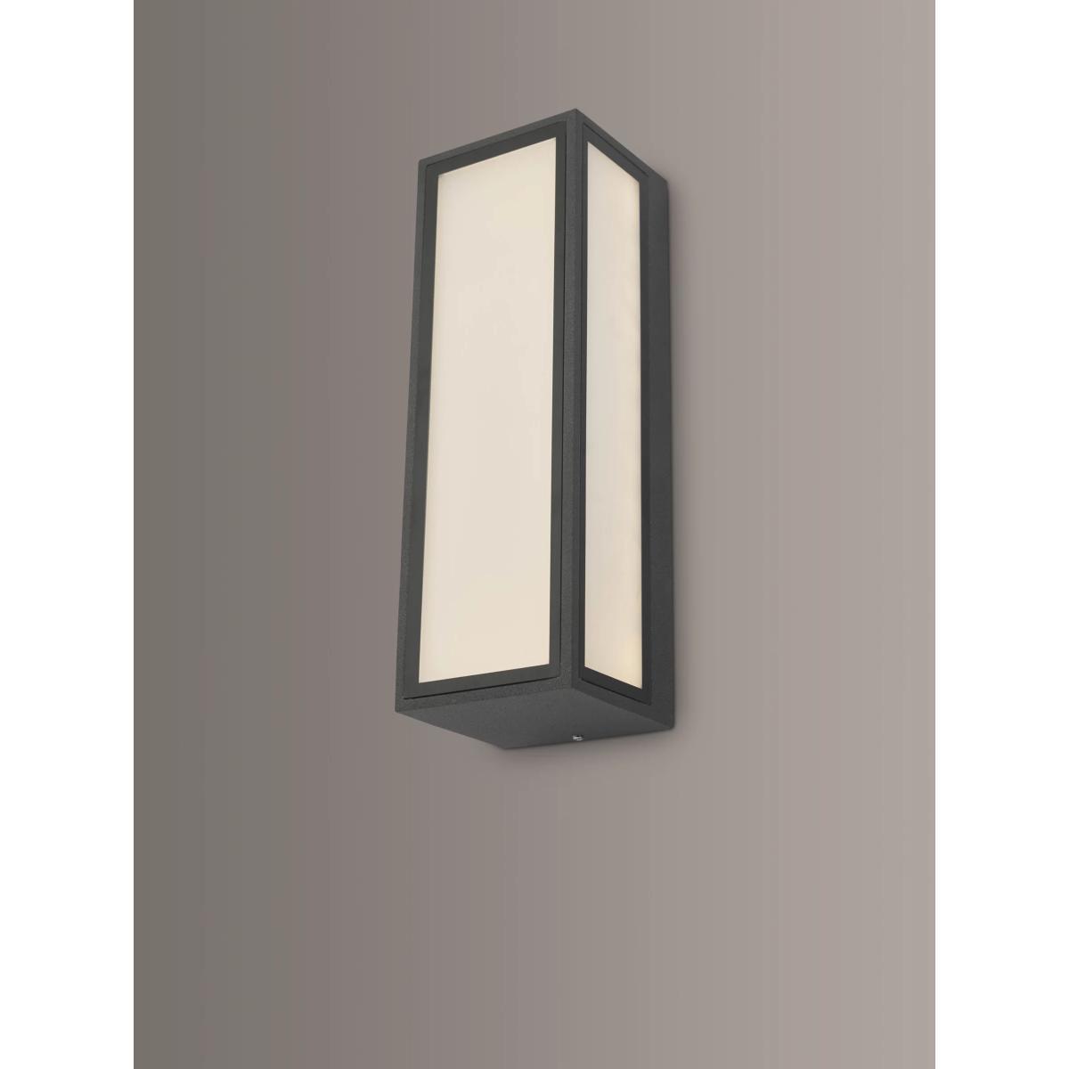 Illuminate your outdoor space with this functional wall light. It's made from die-cast aluminium in a matt finish and the integrated LED sits behind a frosted glass panel, enhancing a diffused wash of bright light. The IP65 rating ensures its performance and resistance to moisture and dust. Worth Knowing To create a more innovative look, this light has been designed to incorporate the LED within it. This LED is not replaceable but has a lifespan of up to 20,000 hours. LEDs use around 85% less energy than incandescent bulbs.