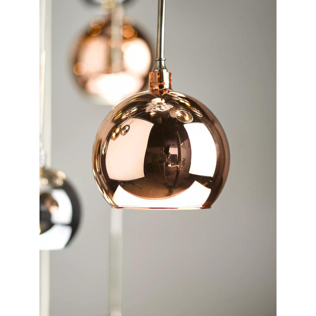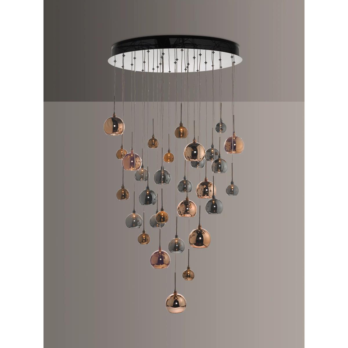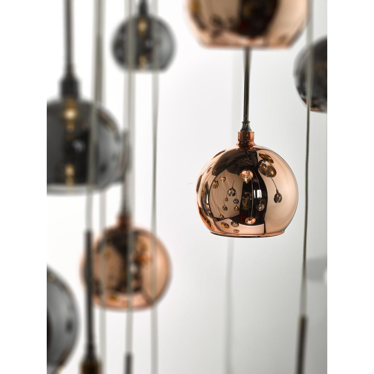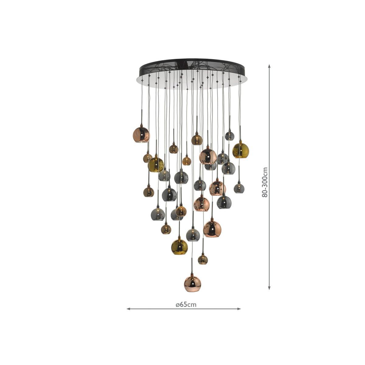 Formed from a cluster of high-shine, electro-plated glass shades in varying shades of copper and bronze, this striking ceiling light is designed to make an impact. Height-adjustable, with a maximum height of three metres, it provides an ambient wash of light. 30 LED bulbs are included.