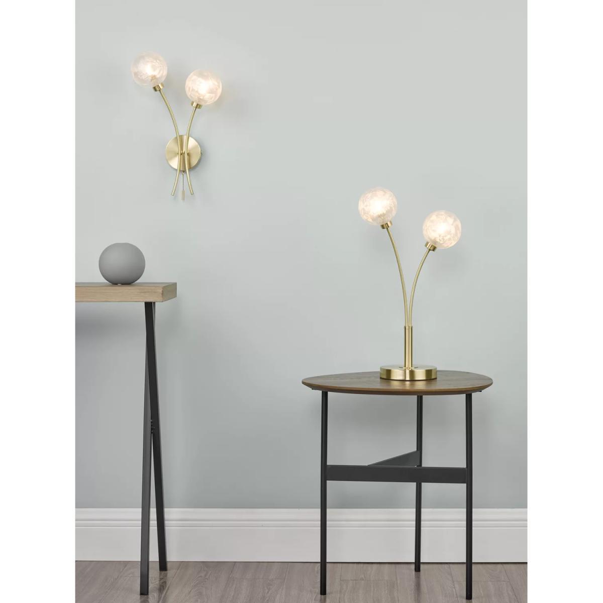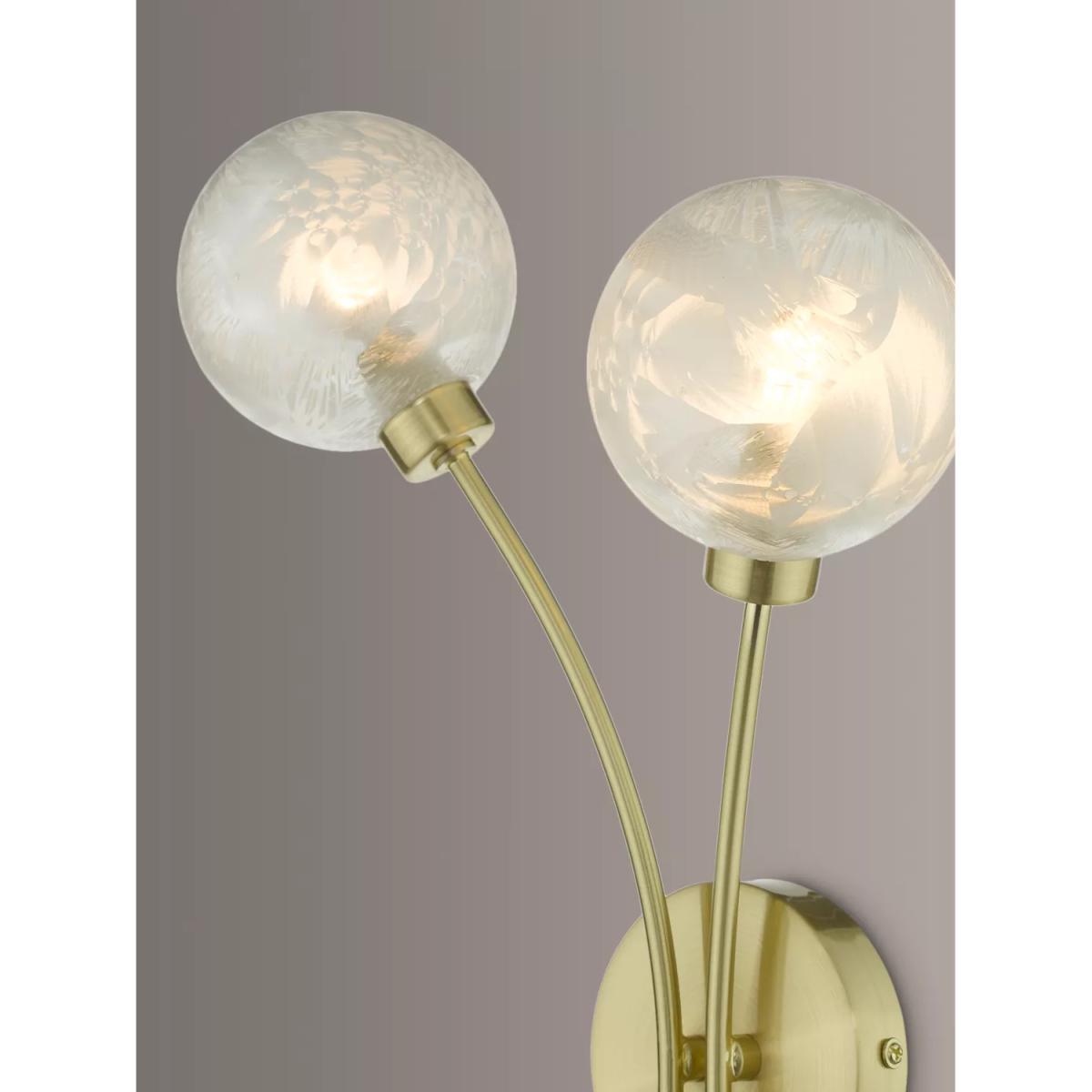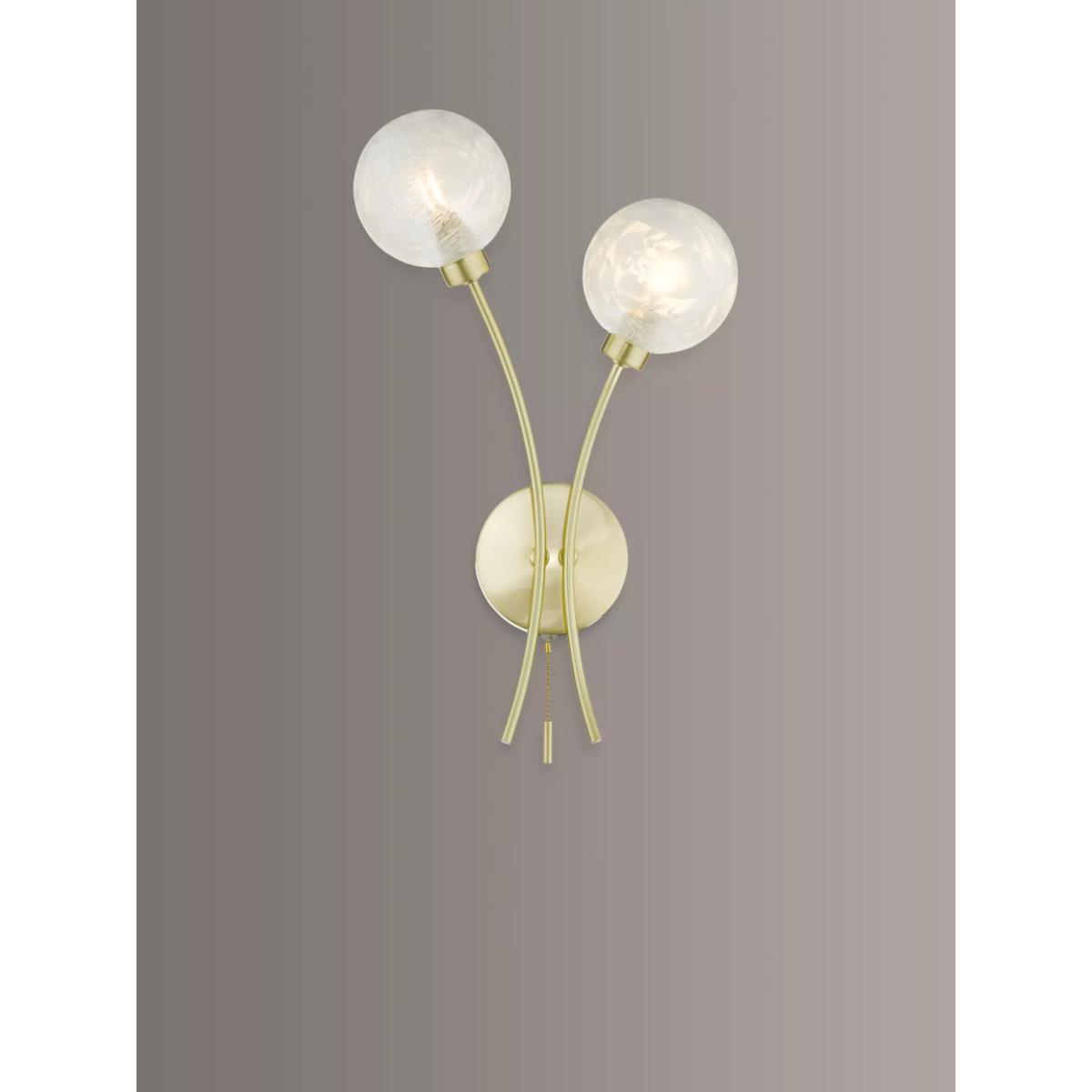 This decorative wall light features two house glue-chip glass shades, which are designed to give the illusion of ice crystals. It offers an ambient glow of light and will draw the eye wherever it's installed.