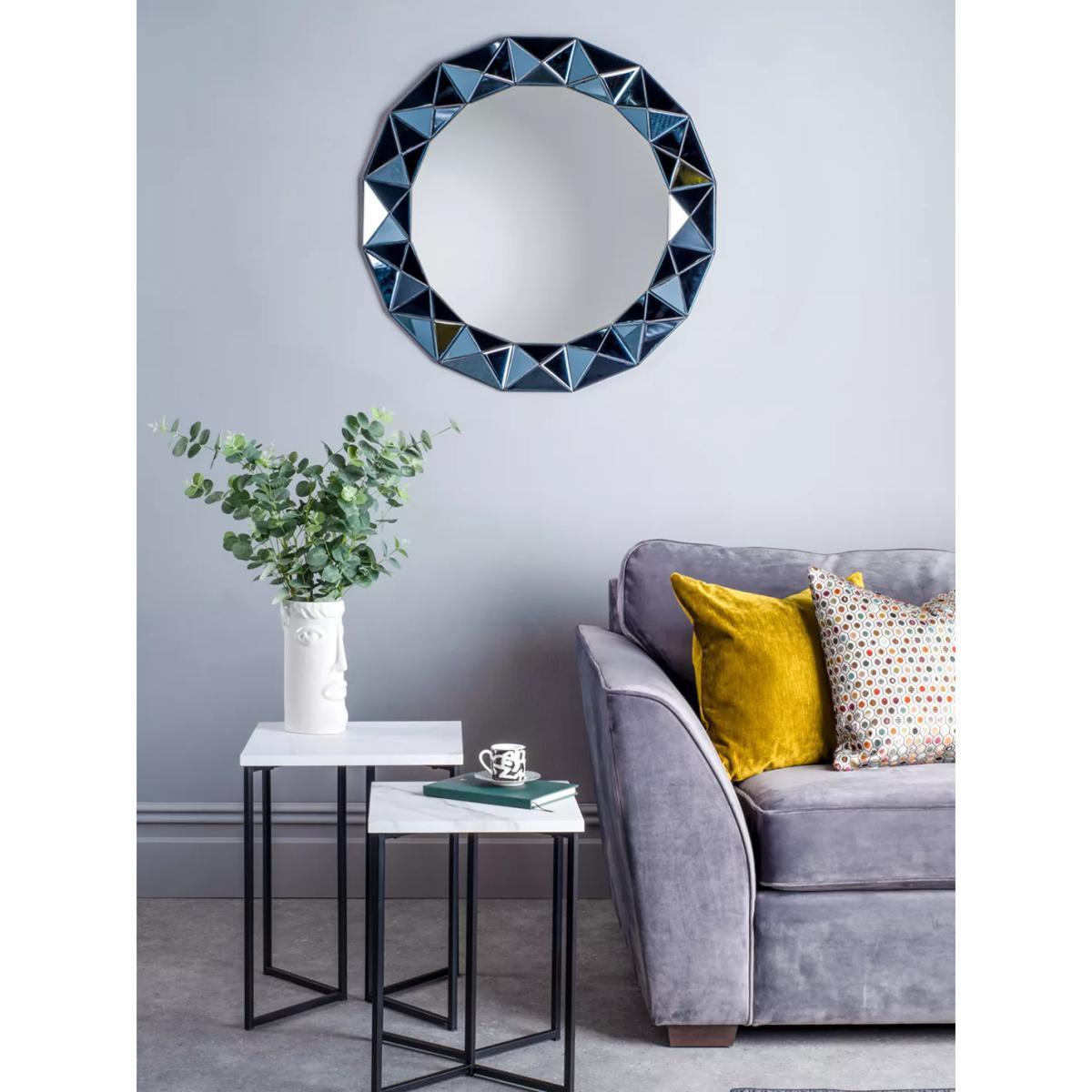 A striking, modern design, the Cetara mirror from Där has a smoke grey 3. D-effect faceted border. This round mirror is ready to hang on your wall using the fittings on the back. Have you thought about wall ?