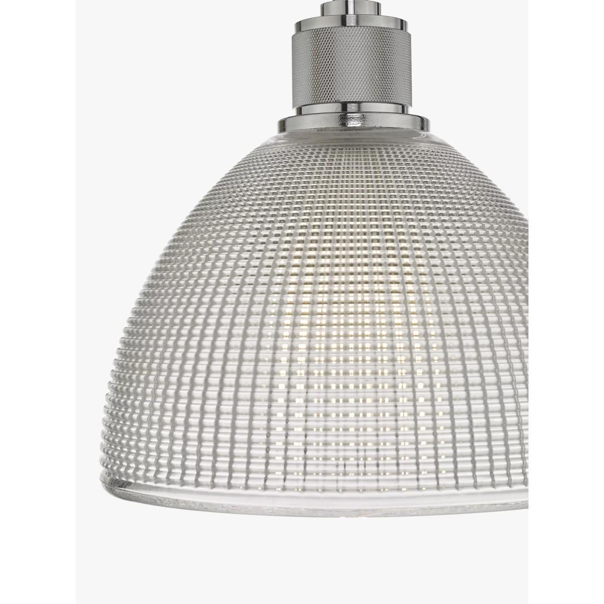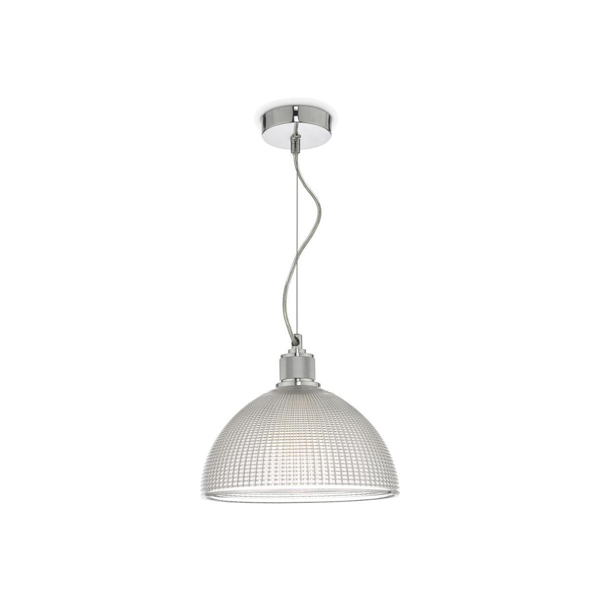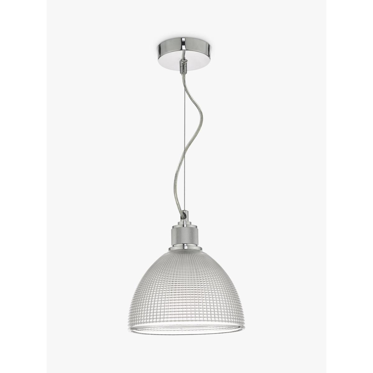 Install this ceiling light above kitchen islands or dining tables and enjoy a warm and direct glow of light. It's height adjustable on installation and made from prismatic glass in a dome shape with polished chrome detail.