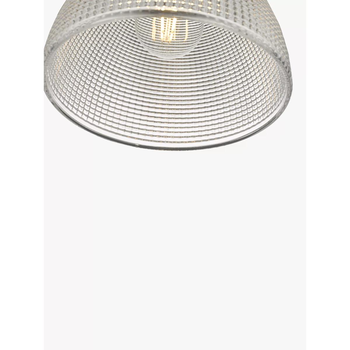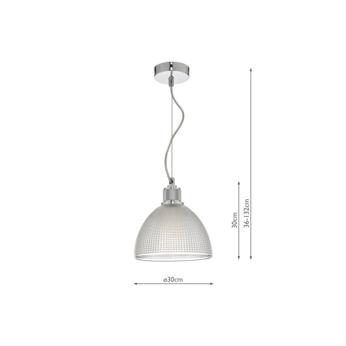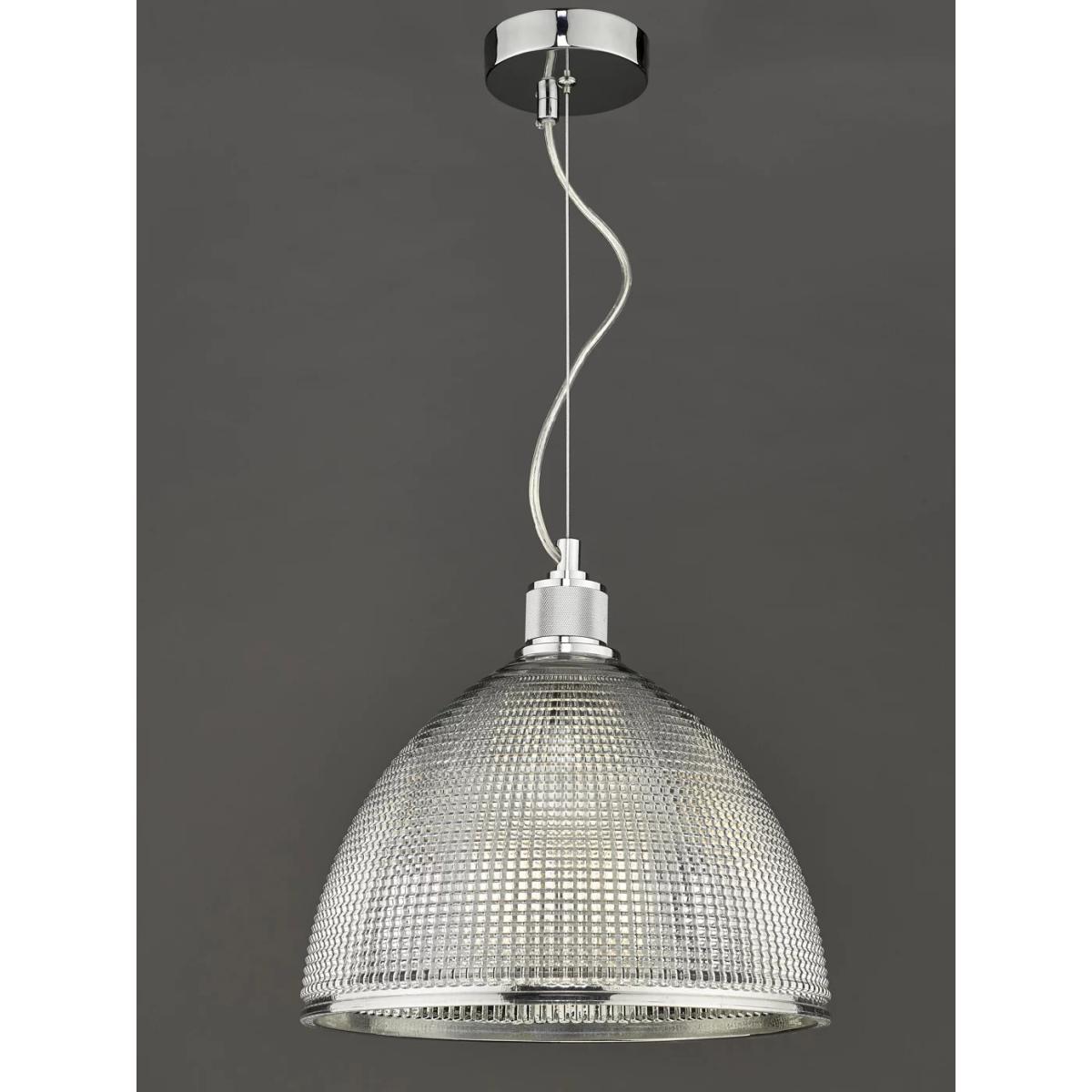 Install this ceiling light above kitchen islands or dining tables and enjoy a warm and direct glow of light. It's height adjustable on installation and made from prismatic glass in a dome shape with polished chrome detail.