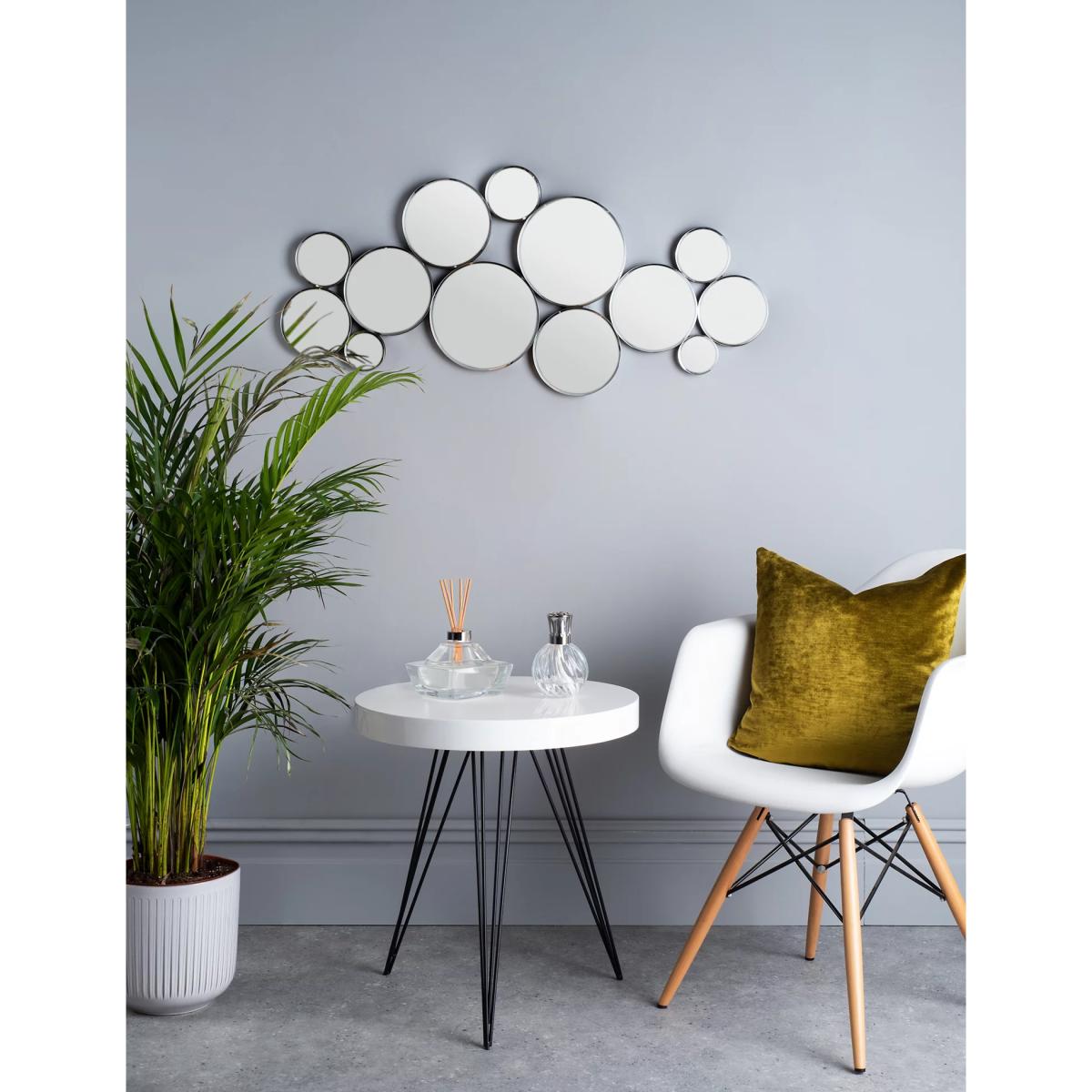 I love this wall mirror for its contemporary and playful design, which creates an eye-catching focal point without overwhelming a space. The silver finish adds a touch of elegance that complements modern and minimalist interiors beautifully, but it can also work well in eclectic or industrial settings as a striking accent. As a stylist, I’d suggest positioning it in an entrance hall to make an inviting statement or in a living room above a console table. For practical styling tips, consider pairing it with metallic accessories or contrasting textures like wood or upholstered furniture to maximise visual interest. Its varied circle sizes make it versatile, so it can suit different wall spaces and ceiling heights with ease.