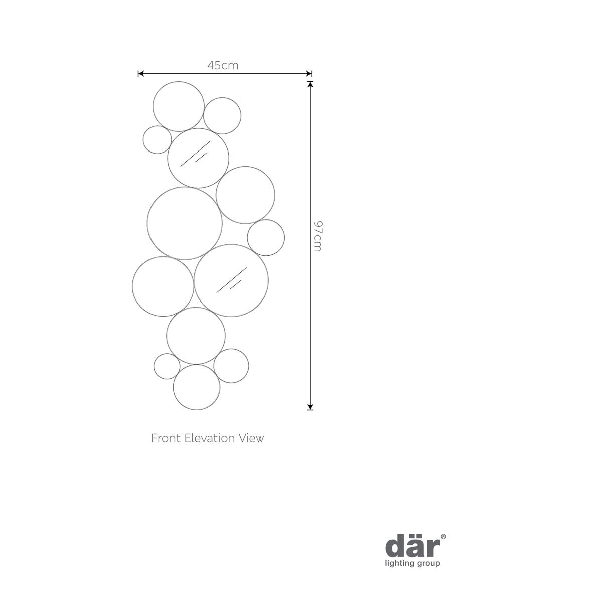 The Digby mirror from Dar will add a contemporary feel to your space. This eye-catching design is made up of 13 circular mirrors in assorted sizes. They've been arranged into an abstract shape and can be displayed horizontally or vertically.