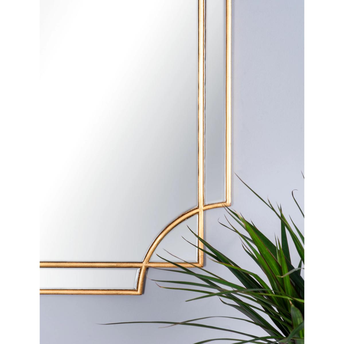 The Guapo mirror from Laura Ashley has a classic Art Deco-inspired design. This rectangular style is crafted with intersecting frames, featuring an elegant gold-tone finish. It can be hung either vertically or horizontally.