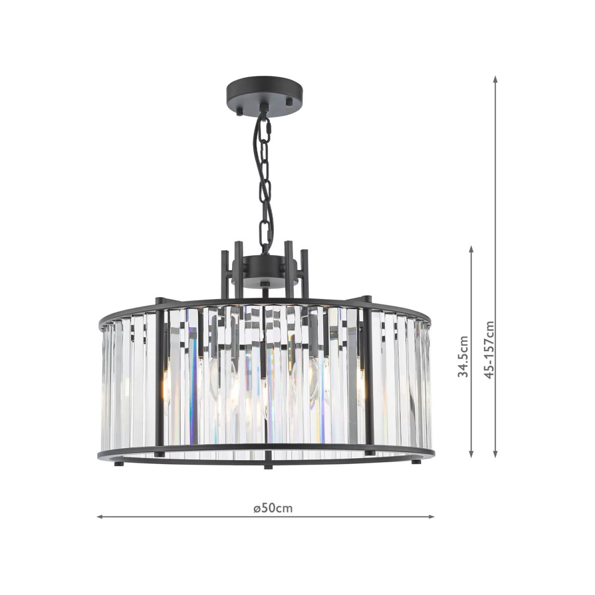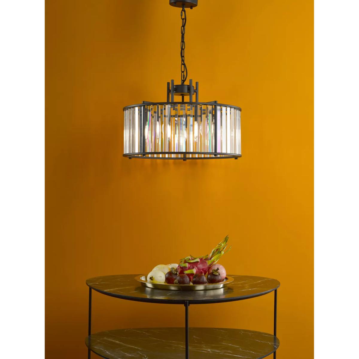 The stunning Kiran pendant includes a satin finished frame that exudes timeless elegance and sophistication. The faceted glass adds a touch of glamour and creates an eye-catching visual effect when illuminated. Suspended from a matching chain, the Kiran ceiling light is ideal for adding a contemporary touch whether it's suspended over a dining table or in a hallway. Height is adjustable at the point of installation.