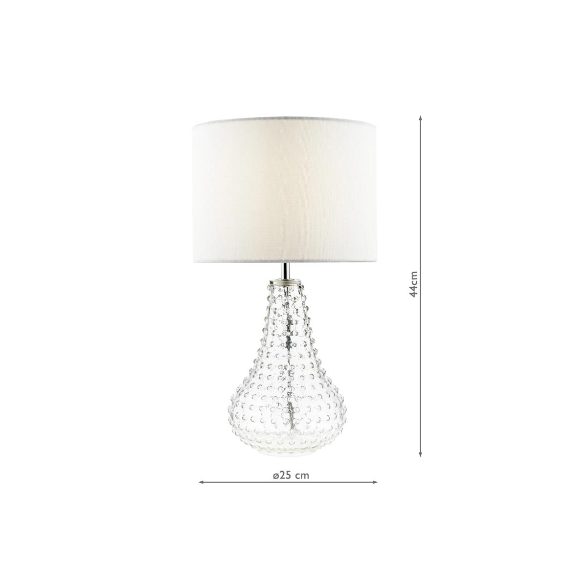 The Kristina table lamp is a stunning piece that brings the perfect balance of vintage charm and contemporary design to your space. This table lamp features a unique hobnail style glass base, adding a clean and tactile look to your decor. The linen shade complements the base beautifully and offers a soft and inviting glow to any room.