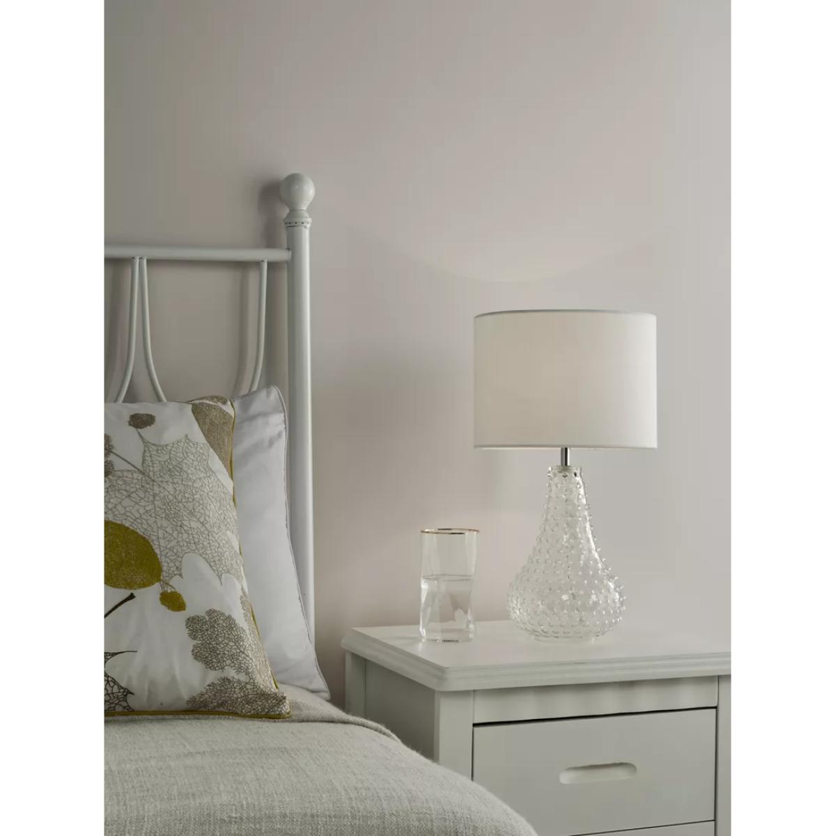I love this little table lamp for its playful yet versatile look. The textured glass base adds a pop of colour and interesting tactile detail, making it a great statement piece in a variety of interiors. It works particularly well in eclectic, contemporary, or retro-inspired spaces - think alongside greenery, soft fabrics, or vintage touches. Practical styling tips include pairing it with neutral colours for a fresh, modern vibe, or mixing it with patterned accessories for a more layered, bohemian feel. Its size and charm make it ideal for side tables, consoles, or desktops, where it can add both light and a touch of colour without overwhelming the space.